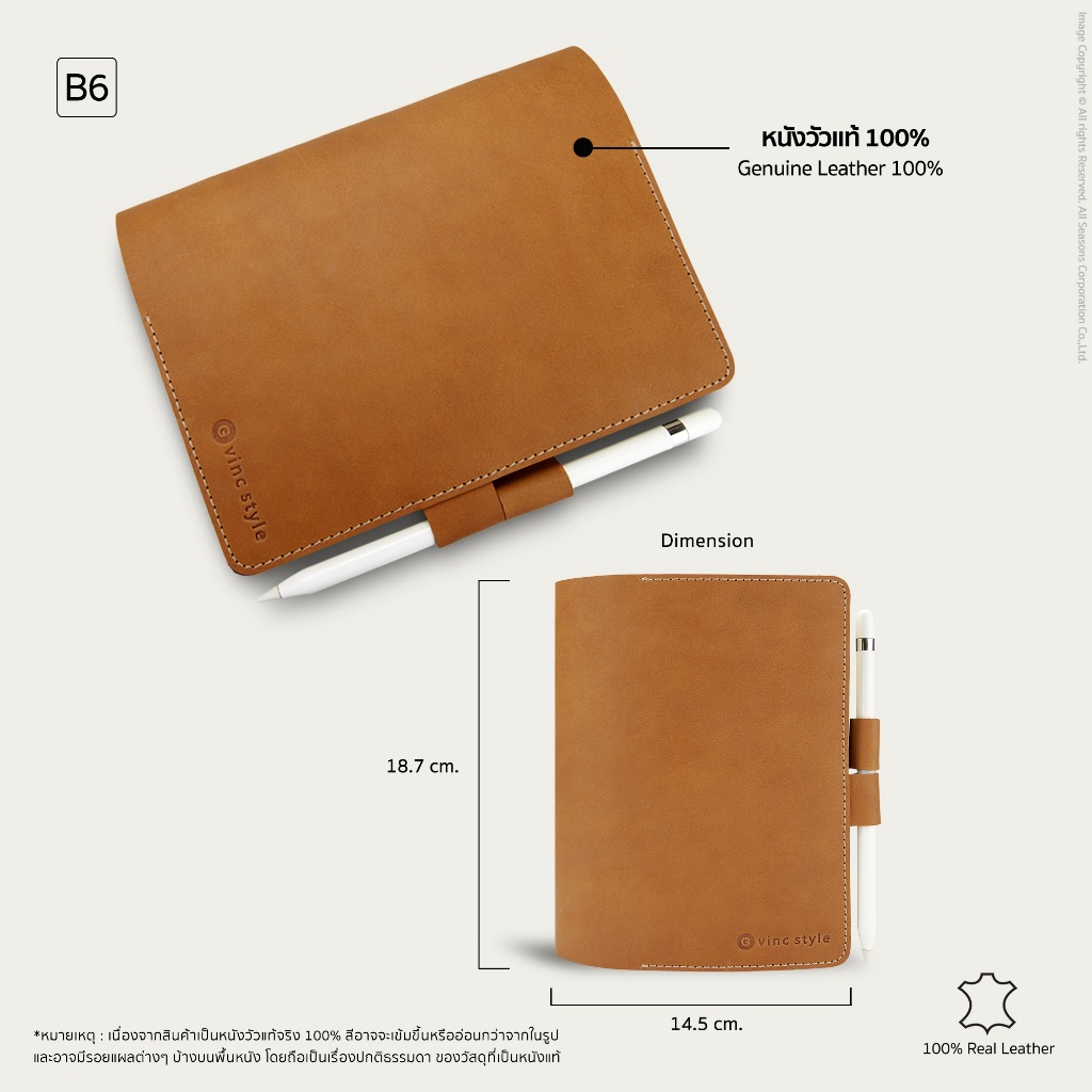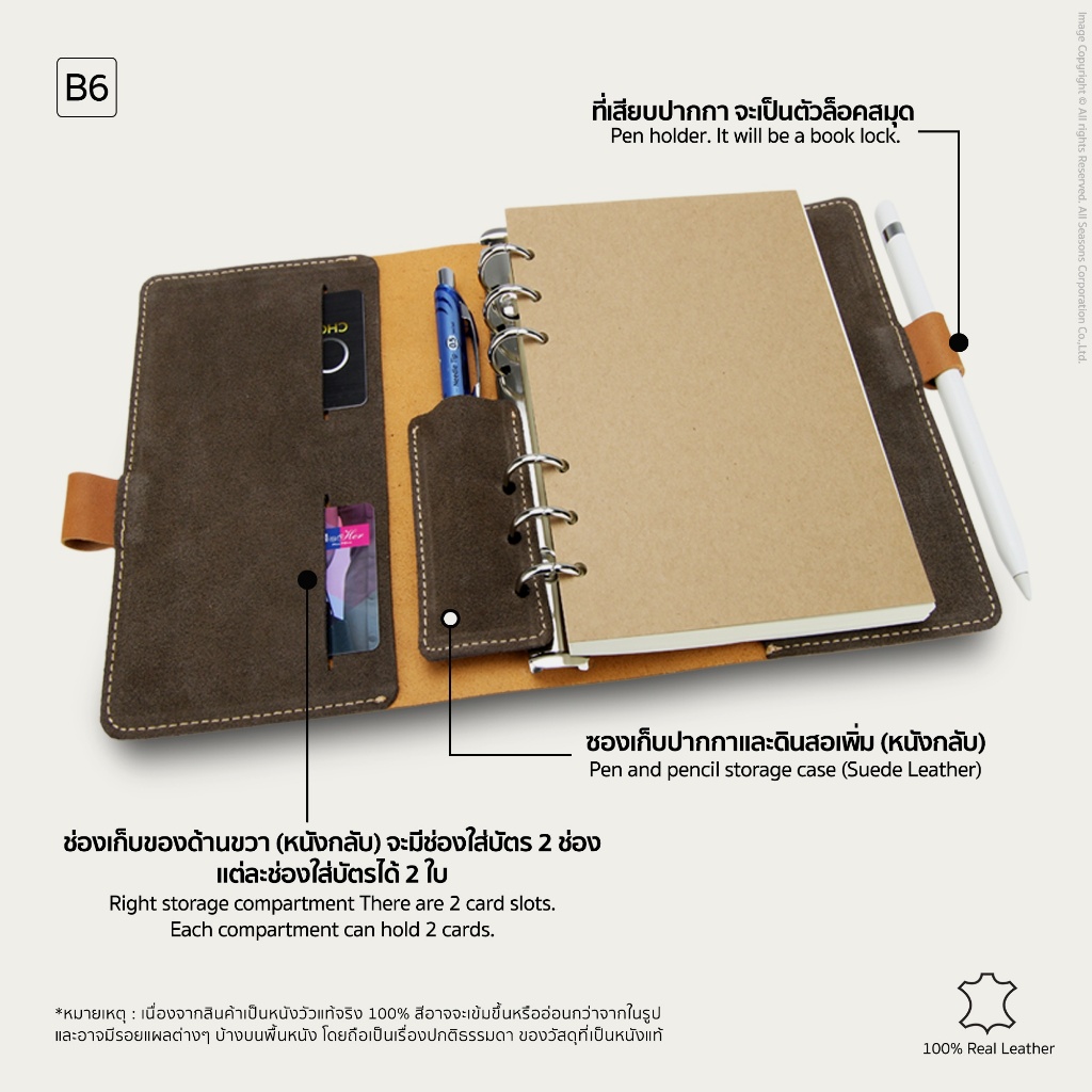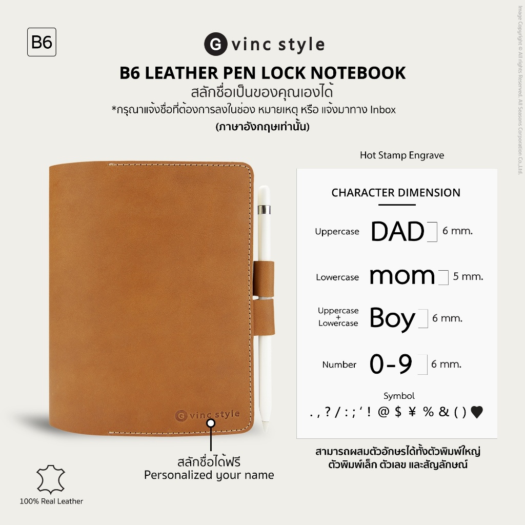 สมุดโน๊ต ปกหนังแท้ สลักชื่อได้ แบบใช้ปากกาล็อค Leather Pen Lock Notebook B6
