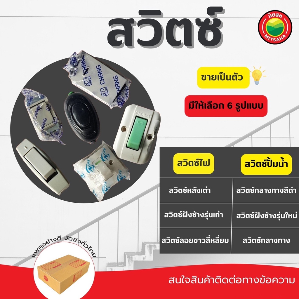 สวิตซ์ไฟฟ้า สวิตซ์ไฟ SWITCH สวิตซ์หลังเต่า สวิตซ์ฝังช้างรุ่นเก่า/ใหม่ สวิทช์ สวิตซ์ขาวสี่เหลียม กลางทาง สีดำ ไฟ มิตสห