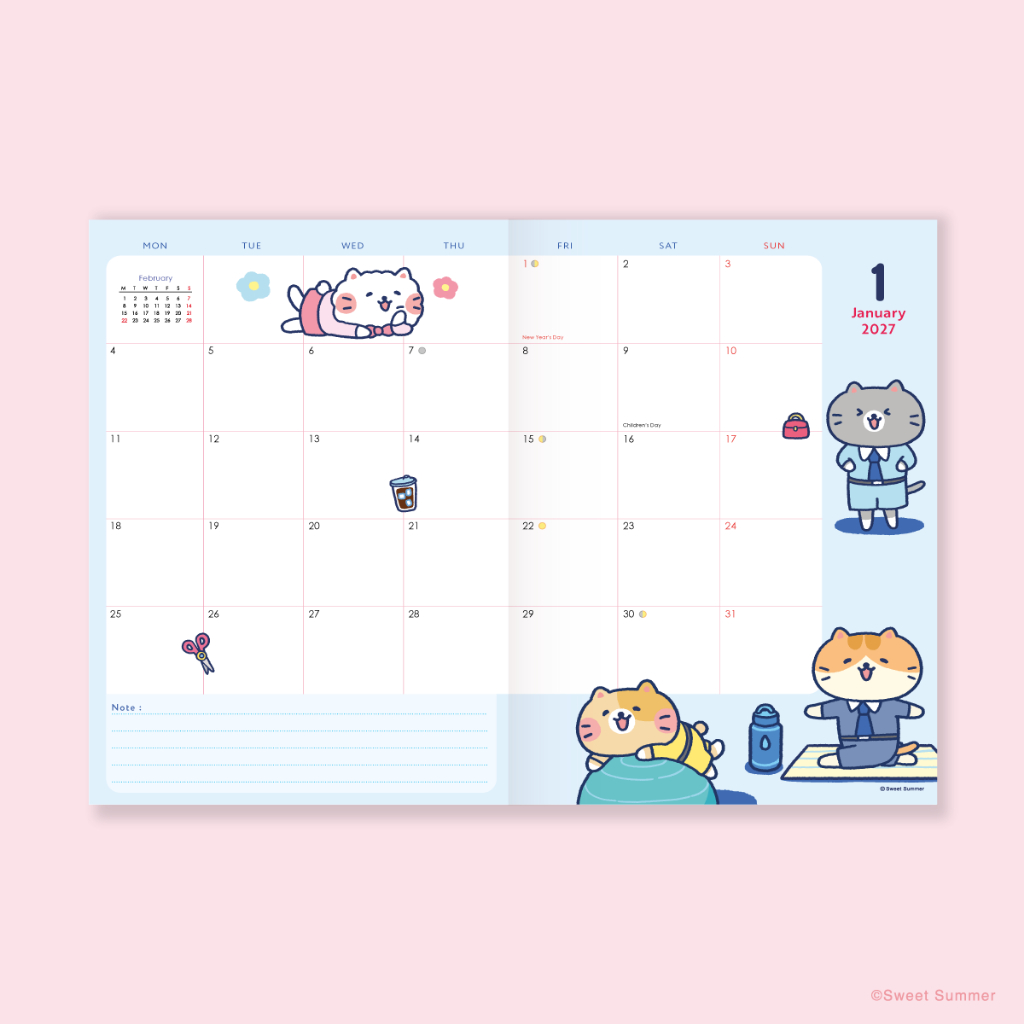 สวีทซัมเมอร์ : แพลนเนอร์รายเดือน 2026 ลาย Cat Company_Work mode off Meow mode on : A5 : ทั้งหมด 4 ลาย