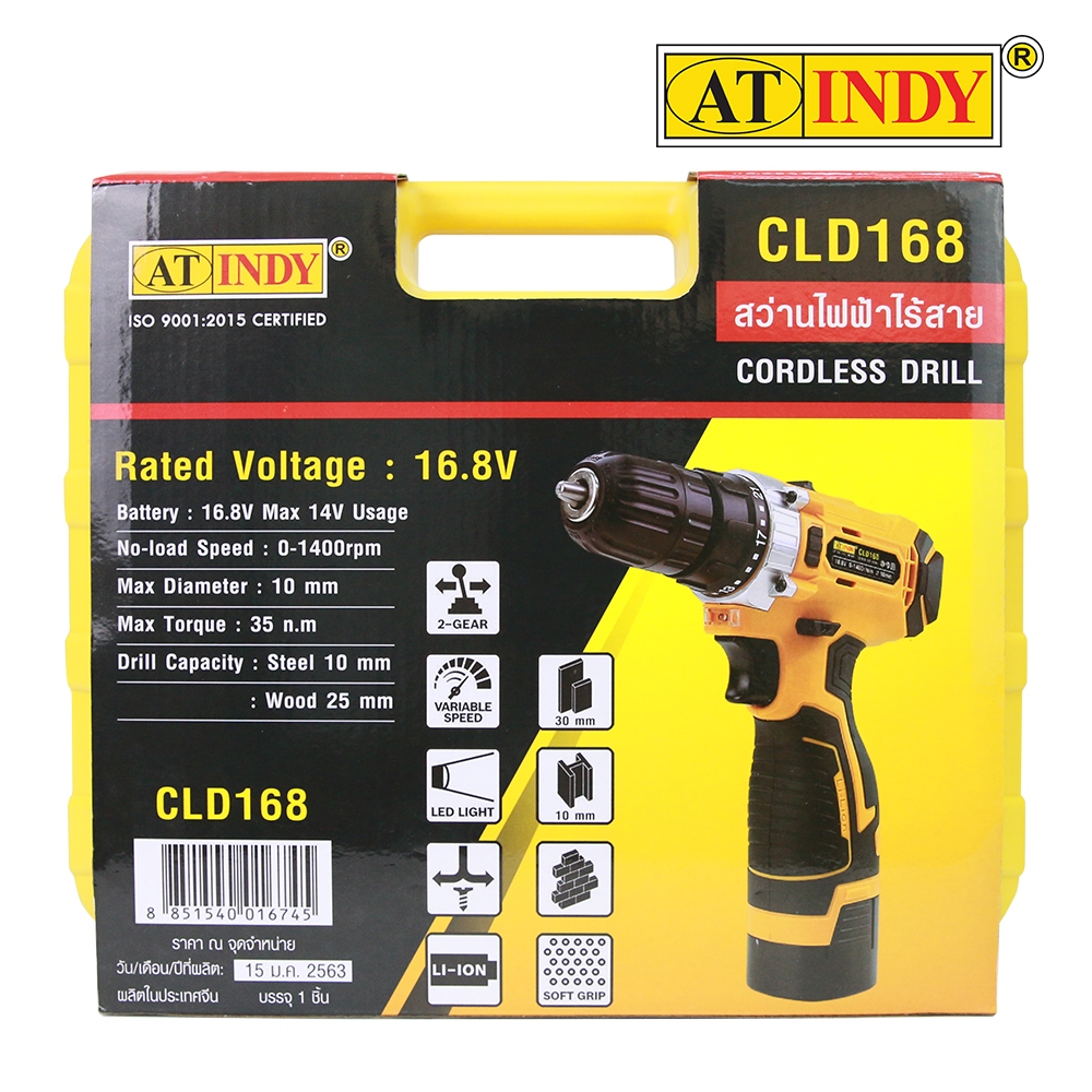 AT INDYสว่านมือไฟฟ้าไร้สาย16.8V CLD168 (แบตเตอรี่ไม่รับประกันแบตอาจเสื่อมเนื่องจากเก็บนาน)