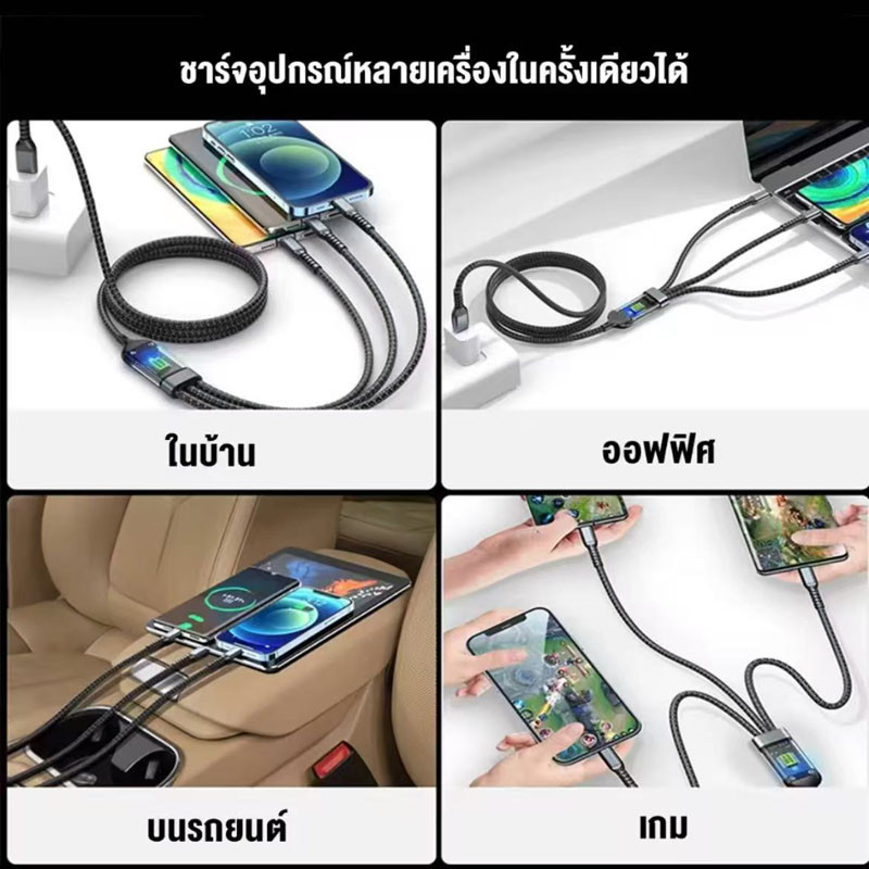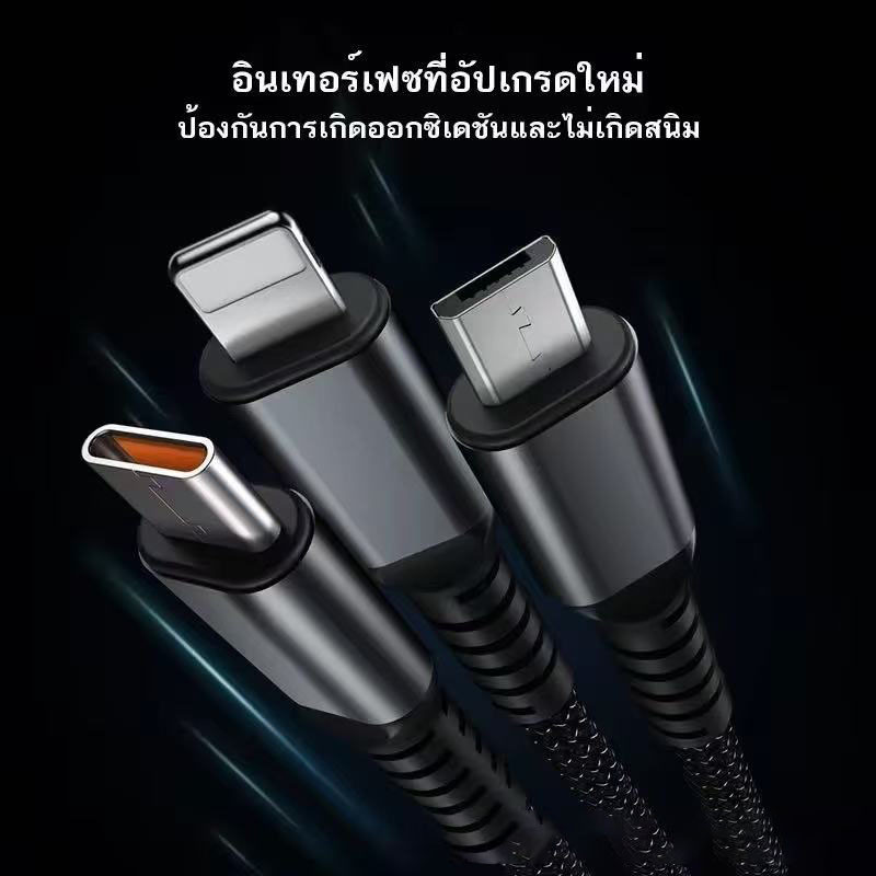 H-department store สายชาร์จข้อมูลเร็ว 3-in-1 Micro USB Type-C 100W 6A