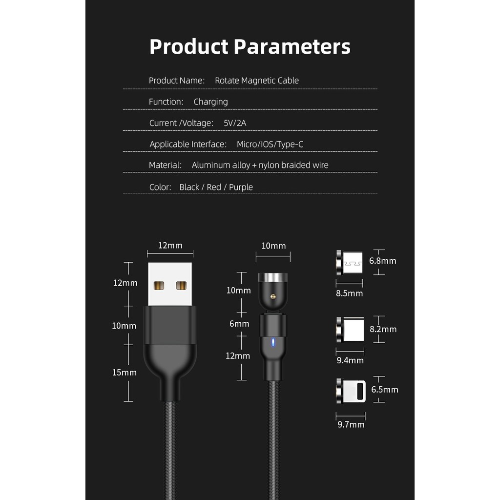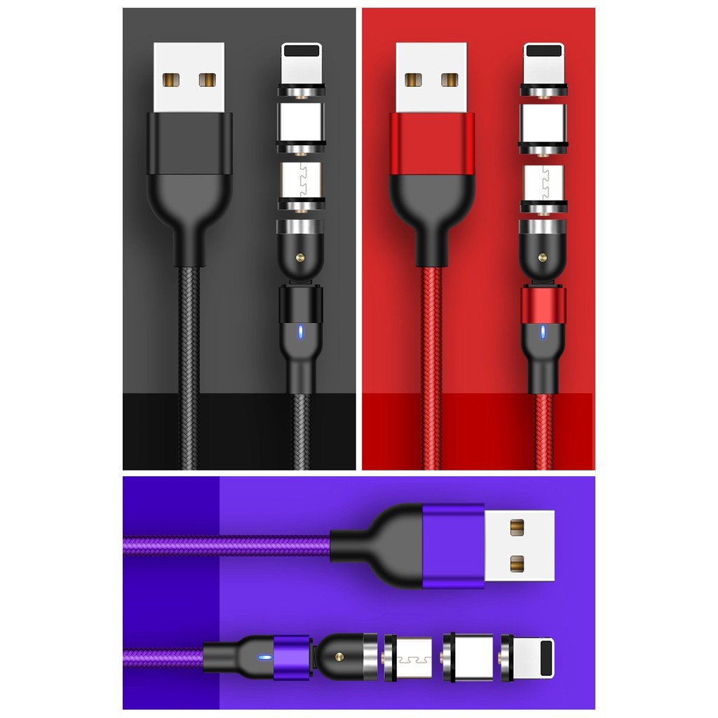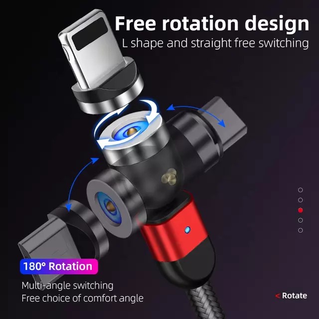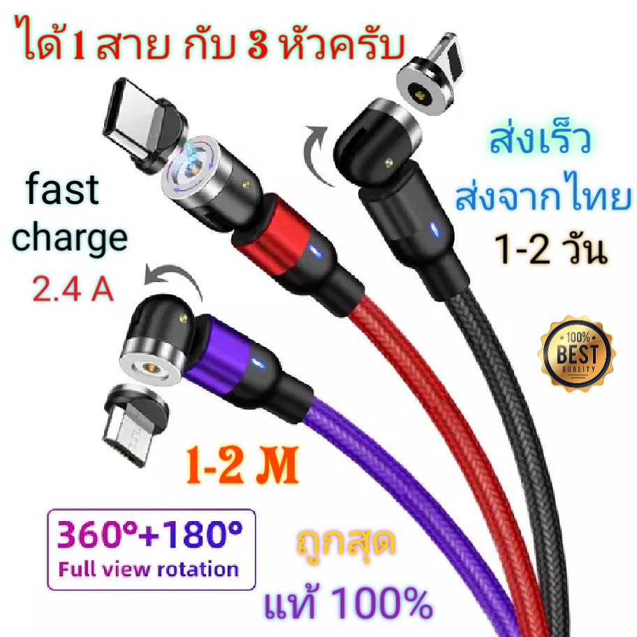 สายชาร์จแม่เหล็ก 1 สาย 3 หัว หมุนได้ 540 องศา เลือกหัวได้ มีรับประกันจากผู้ขาย Micro usb, Type-c และ สำหรับไอโฟน