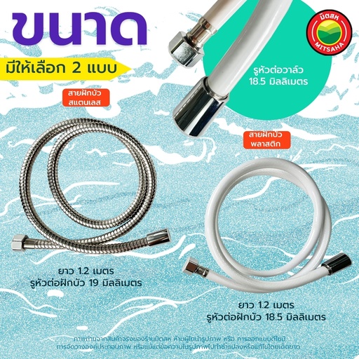 สายอ่อนฝักบัว ยาว1.2เมตร SHOWER HOSE สาย ฉีด ชำระ น้ำดี สแตนเลส ใยแก้ว ถัก พลาสติก อาบน้ำ ห้องน้ำ เครื่องทำน้ำอุ่น มิตสห