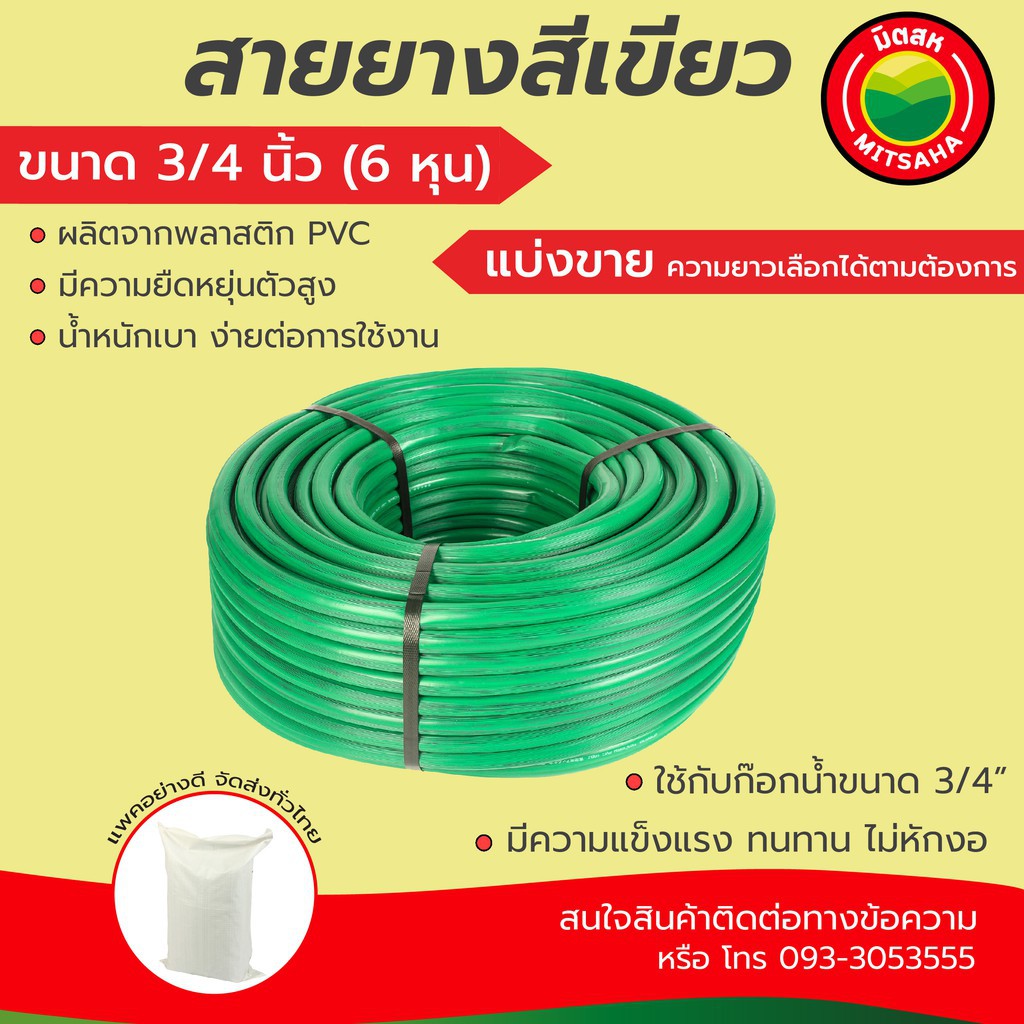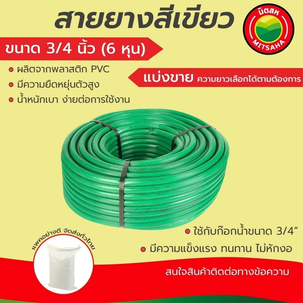 สายยางเขียว มิตสห เกรดAAA ขนาด3/4นิ้ว(6หุน)(ก๊อก3/4”) หนา2mm แบ่งขายเป็นเมตร Water hose สายยางรดน้ำ สายยางฉีดน้ำ สีเขียว