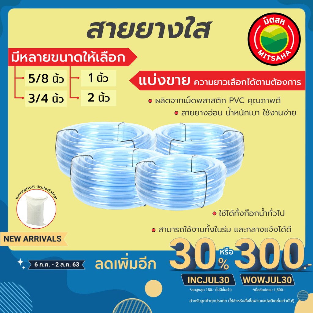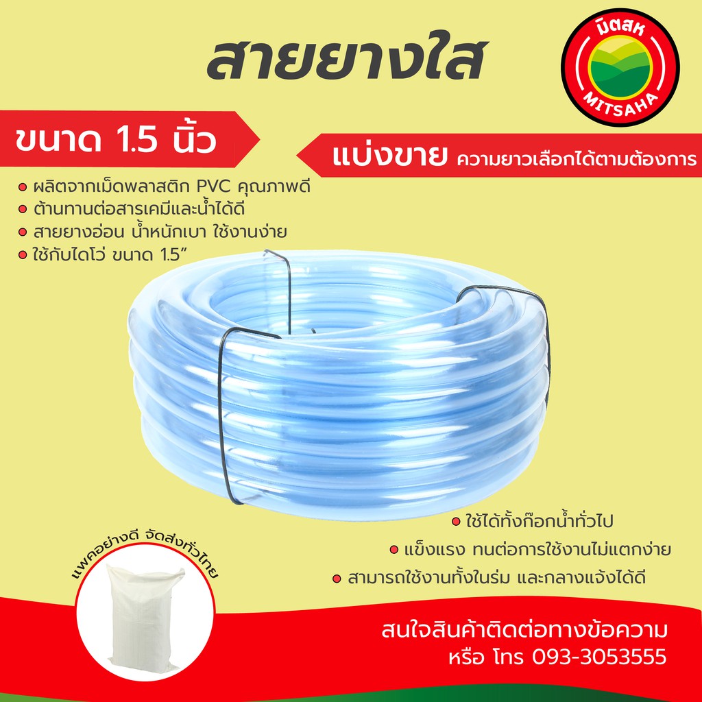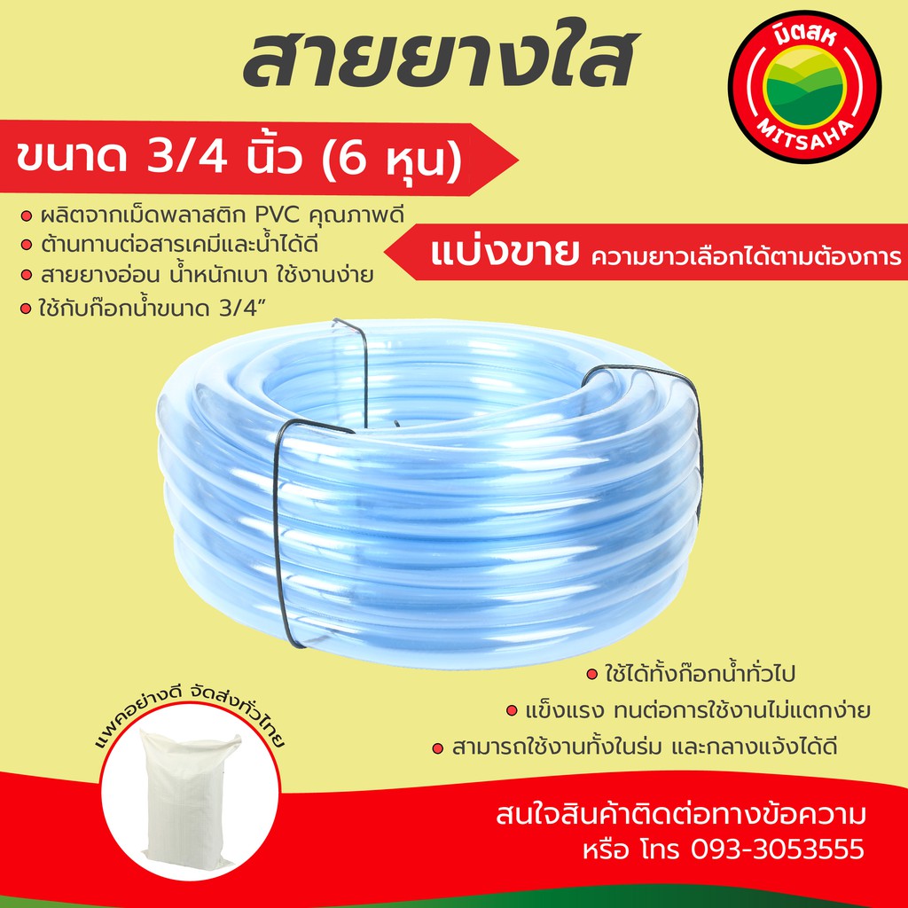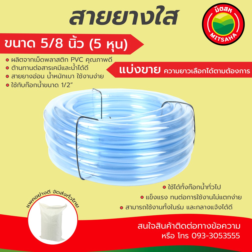 สายยางใส มิตสห เกรดAAA หนา2มม. ขนาด 5/8นิ้ว(5หุน) 3/4นิ้ว(6หุน) 1นิ้ว(8หุน) ตัดแบ่งขายเป็นเมตร สายยางน้ำ รดน้ำ Waterhose