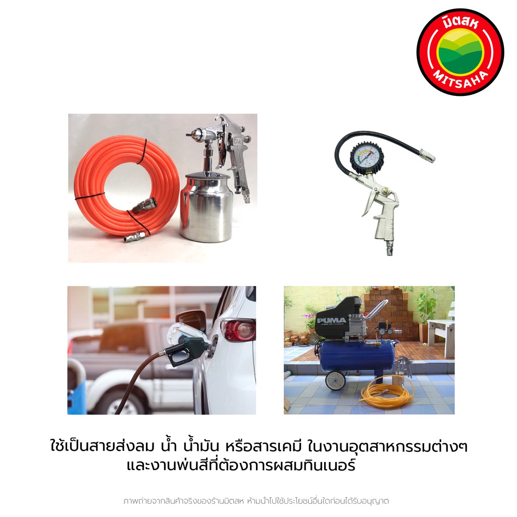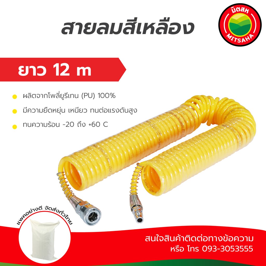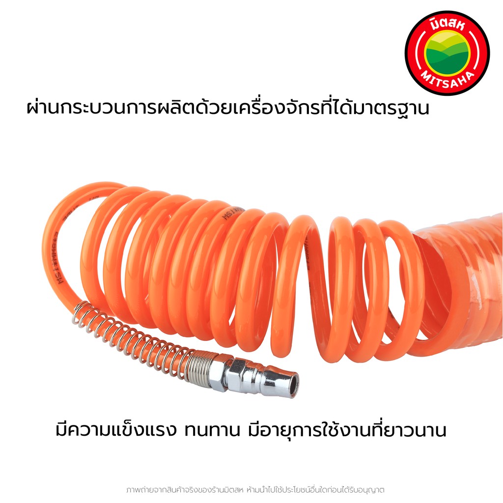 สายลม สายลมPU สายลมแบบสปริง พร้อมคอปเปอร์ สีส้ม เหลือง มิตสห ขนาด5x8mm ยาว12เมตร PU Air Hose สายลมพียู