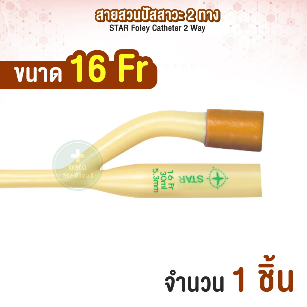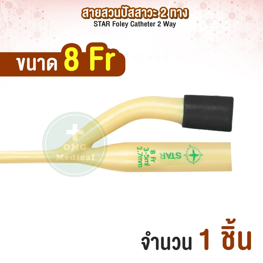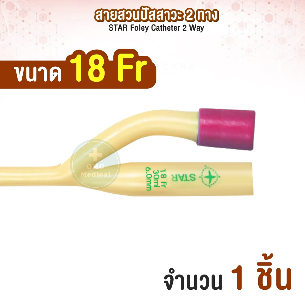 สายสวนปัสสาวะ 2 ทาง Foley Catheter 2 Way ยี่ห้อ STAR สายโฟเรย์ สายปัสสาวะ เบอร์ FR 8 10 12 14 16 18 20 22 24 (1 เส้น)