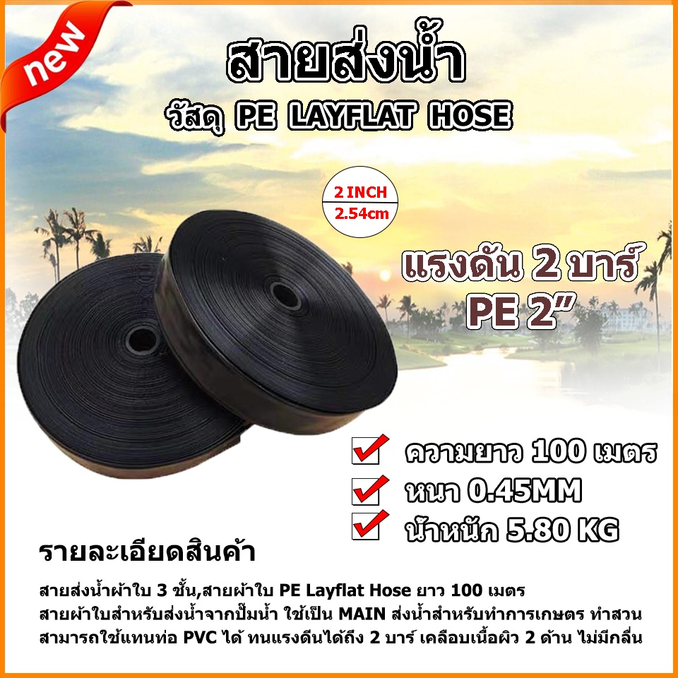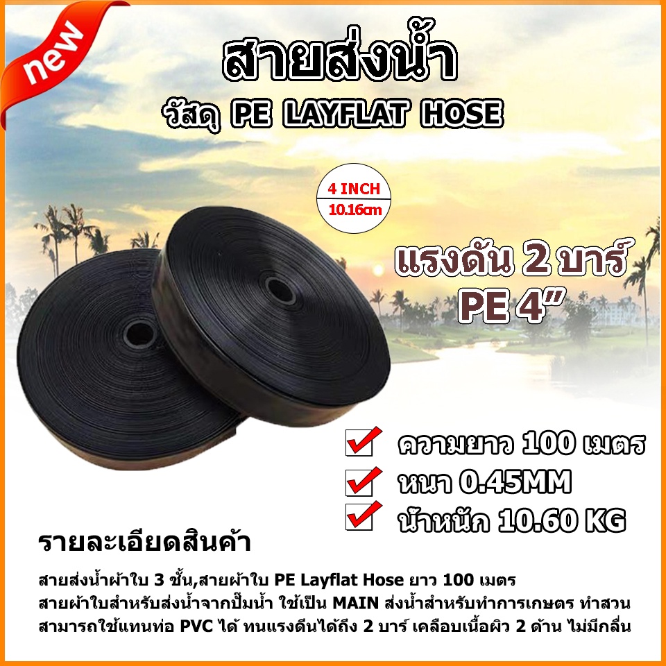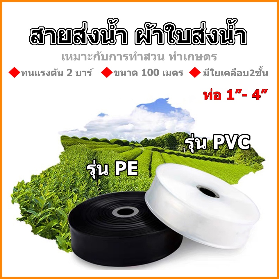 สายส่งน้ำผ้าใบ PE และ PVC ขนาด1นิ้ว 2นิ้ว 3นิ้ว 4นิ้ว ยาว100 เมตรทนแรงดันได้ 2 บาร์ ทนทาน ไม่มีกลิ่น