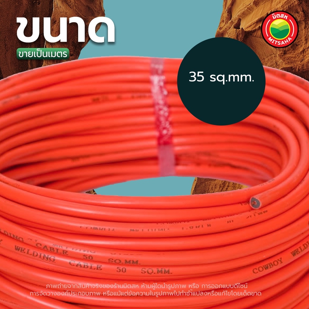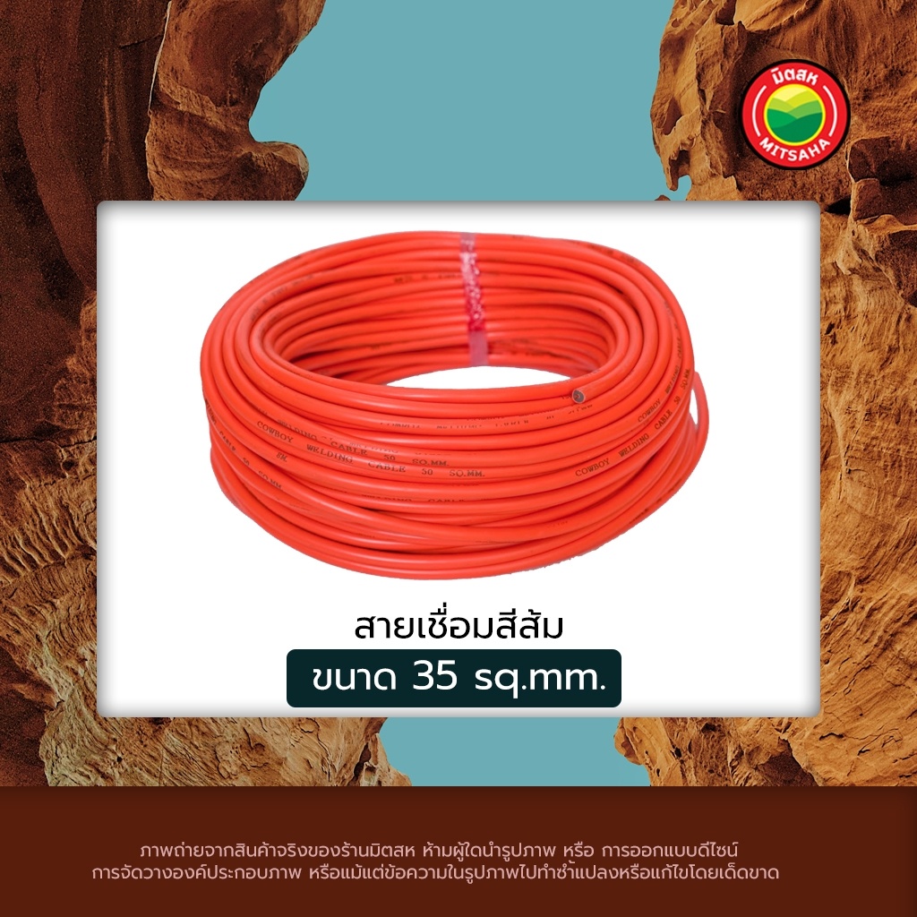 สาย เชื่อมสีส้ม 35sq.mm, 50sq.mm เชื่อม ไฟฟ้า ขายเป็นเมตร คุณภาพสูง รุ่นนิยม แท้100% สายทองแดง หนา กันไฟ สำเร็จรูป มิตสห