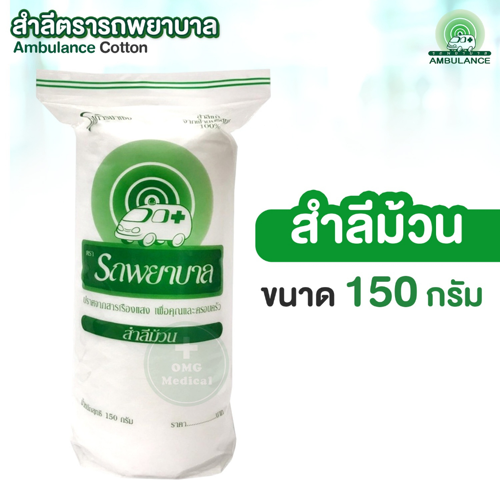 สำลี ตรารถพยาบาล Ambulance Cotton สำล ีแผ่น สำลีม้วน สำลีก้อน ขนาด 40 50 100 150 200 450 กรัม เกรดโรงพยาบาล คลินิกเวชกรรม