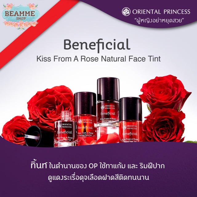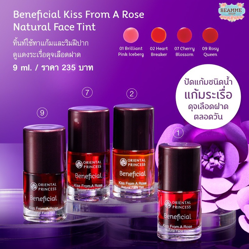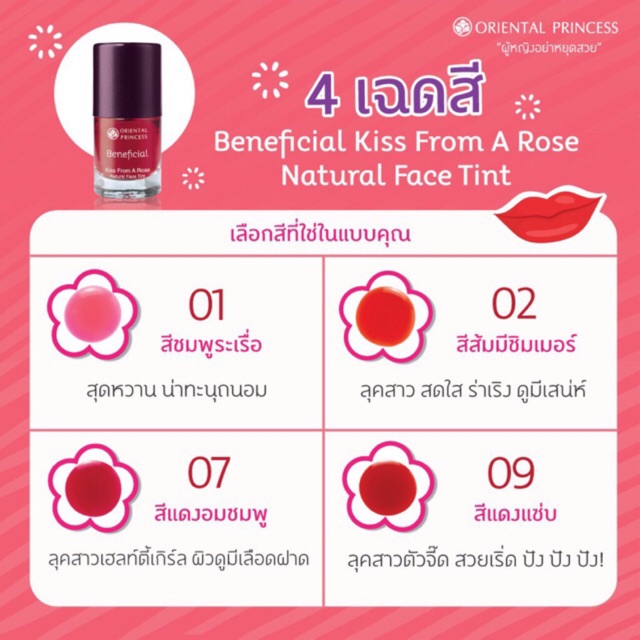 สีทาแก้มและริมฝีปากชนิดน้ำ Beneficial Kiss From A Rose Natural Face Tint
