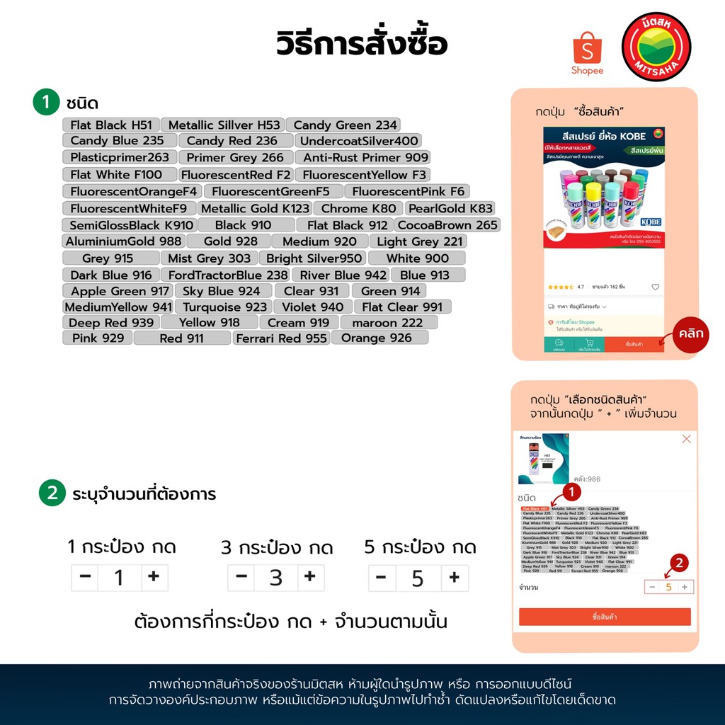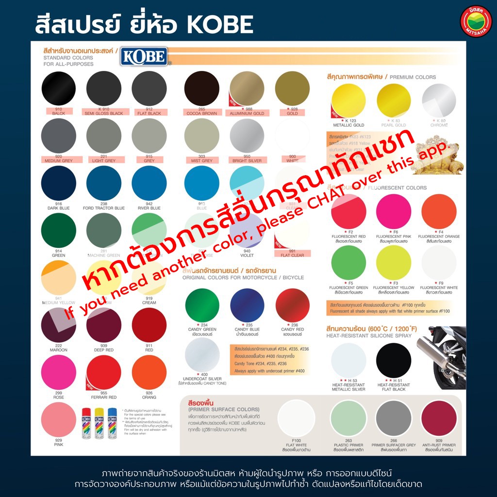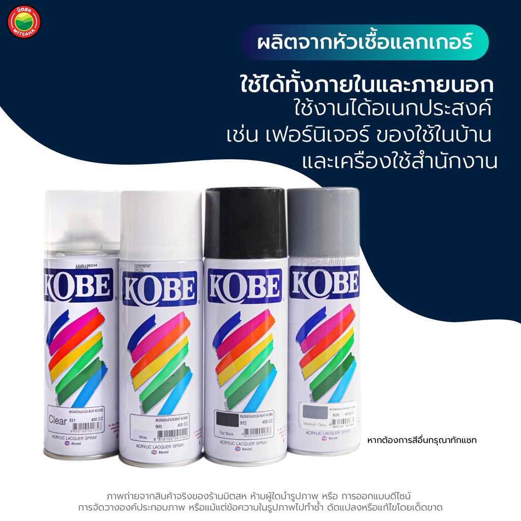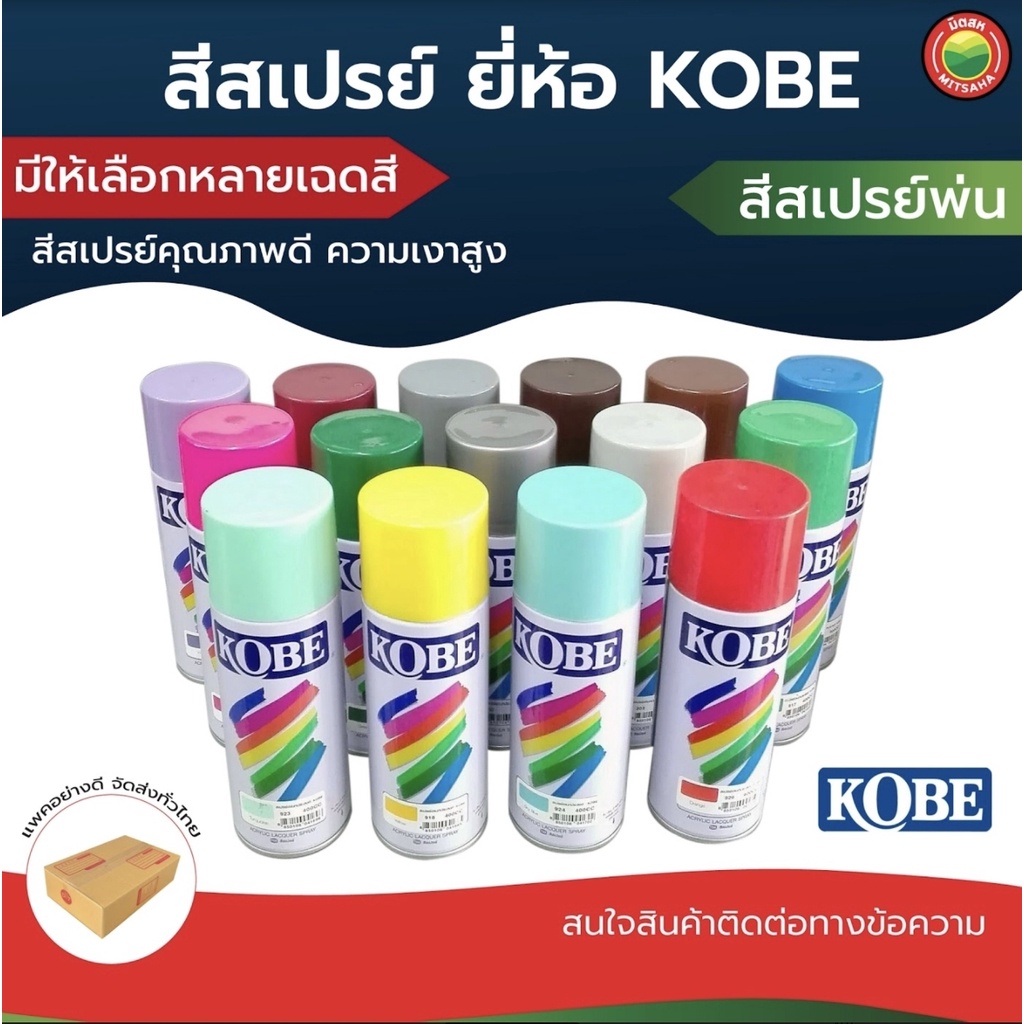สีสเปรย์ ยี่ห้อ โกเบ Kobe ปริมาตร 400 cc อะคริลิค ACRYLIC LACQUER SPRAY สี สเป สเปย์ สเปร สะเป สะเปร พ่น กระป๋อง มิตสห