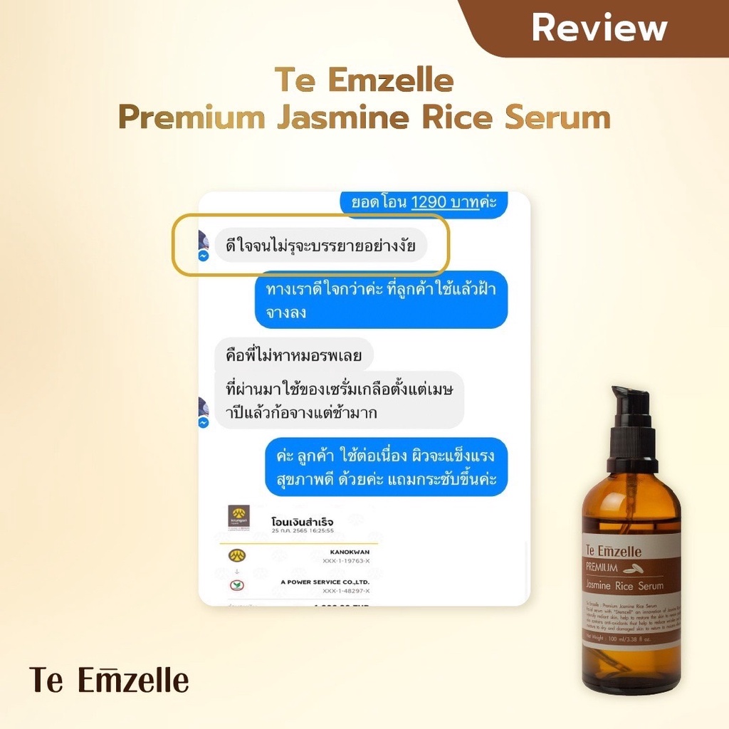 สเตมเซล หน้าเงาTe Emzelle Premium Jusmine rice serum เตเอมเซล เซรั่ม 100ml เซรั่มข้าว