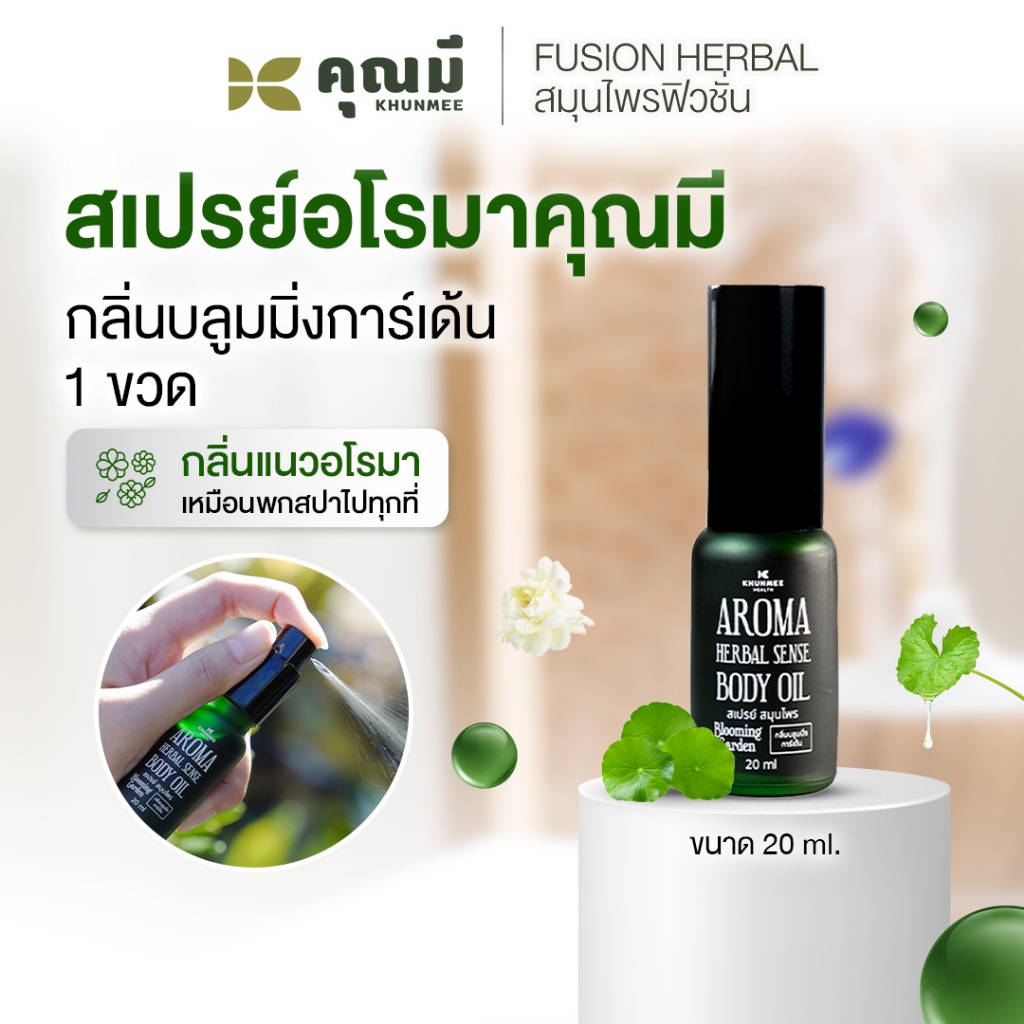 สเปรย์อโรมาคุณมี Khunmee Aroma Herbal Senes Body Oil กลิ่นบลูม มิ่งการ์เด้น 20 ml.