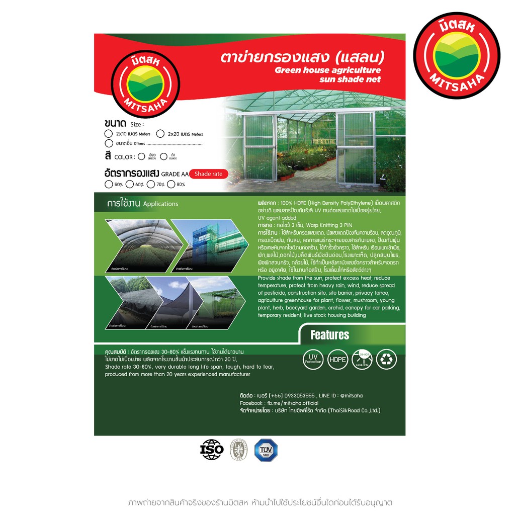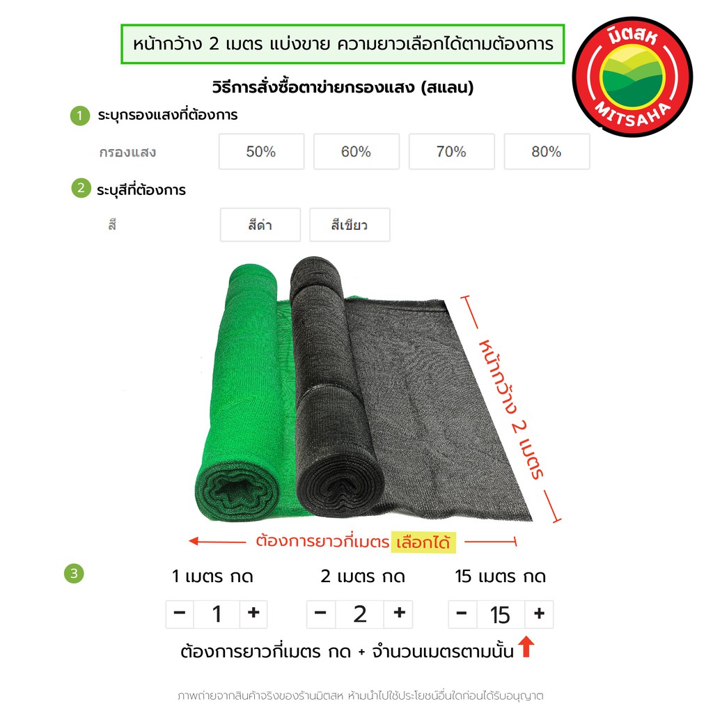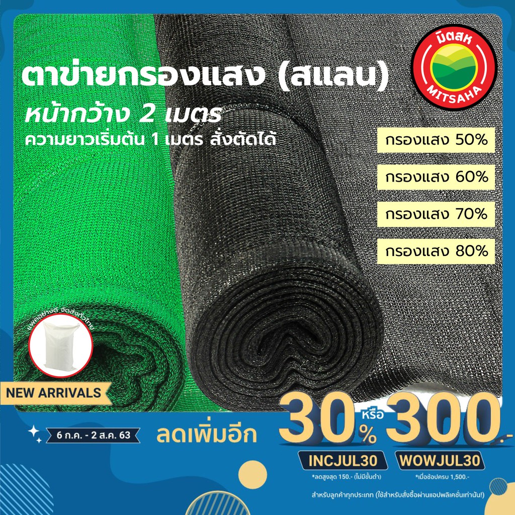 สแลน ตาข่ายกรองแสงเกรดAA 50% 60% 70% 80% สีเขียว สีดำ หน้ากว้าง2เมตร ยาวเริ่มต้น1เมตรสั่งตัดได้ SunShadeNet แสลน มิตสห™️