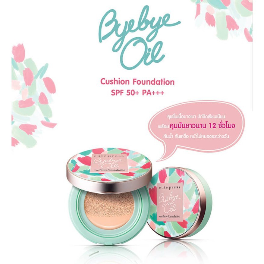 ส่งด่วน/ของแท้/ราคาถูก Cute Press Cushion Byebye Oil SPF 50 PA+++ คิวเพรส คูชั่น บายบาย ออย