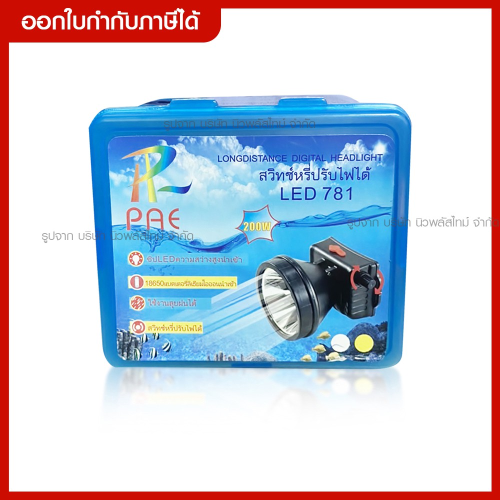 ส่งด่วน PAE LED 781ไฟฉายคาดหัว 200W กันน้ำ ลุยน้ำ ไฟฉายแรงสูงส่องไกล 1000 เมตร มาพร้อมที่ชาร์จ