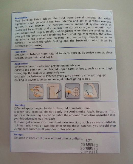 พร้อมส่งแผ่นแปะลดอาการอยากบุหรี่ นิโคตินทดแทน