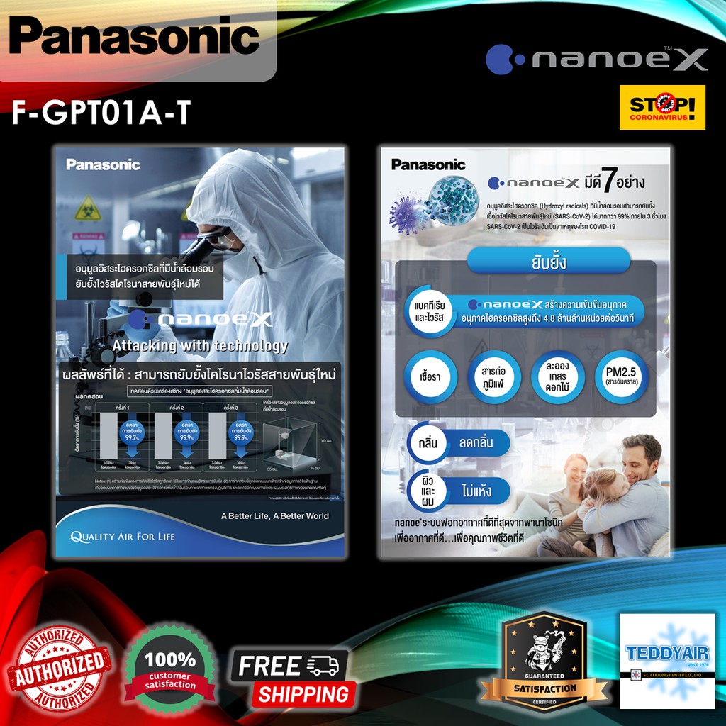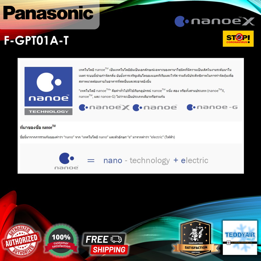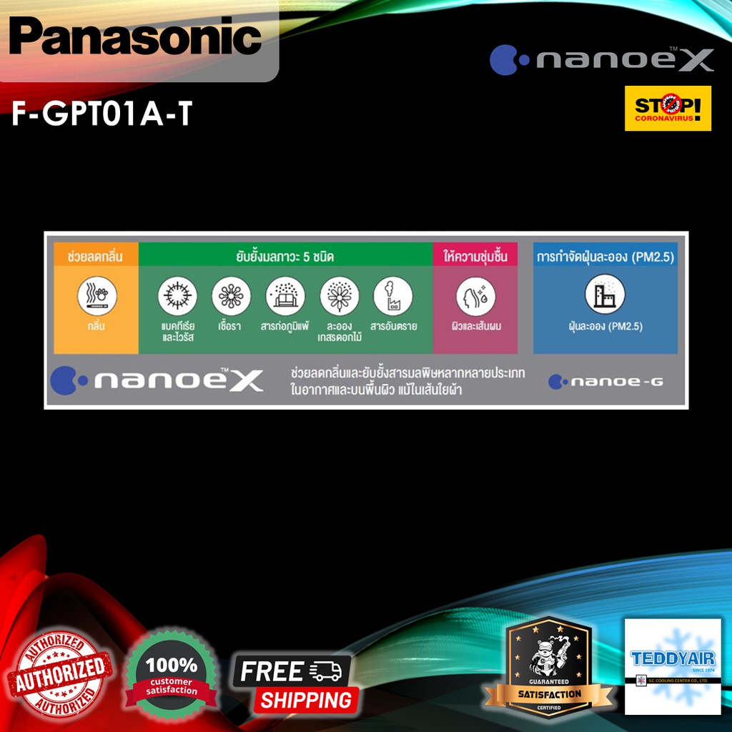ส่งฟรี ⚡️ Panasonic เครื่องสร้างอนุภาค nanoe™X แก้วฟอกอากาศ รุ่น F-GPT01AKT (ดำ), F-GPT01ART (แดง) ยับยั้งไวรัสแบคทีเรีย
