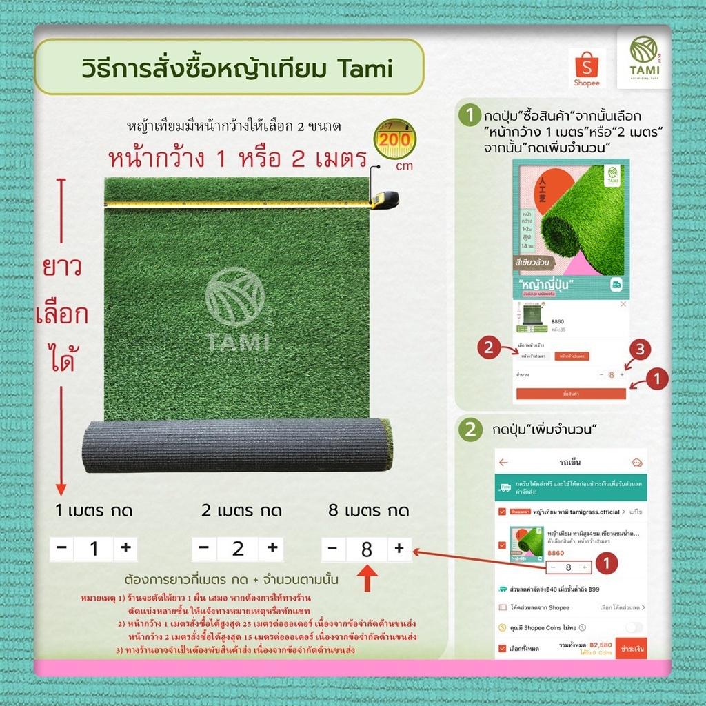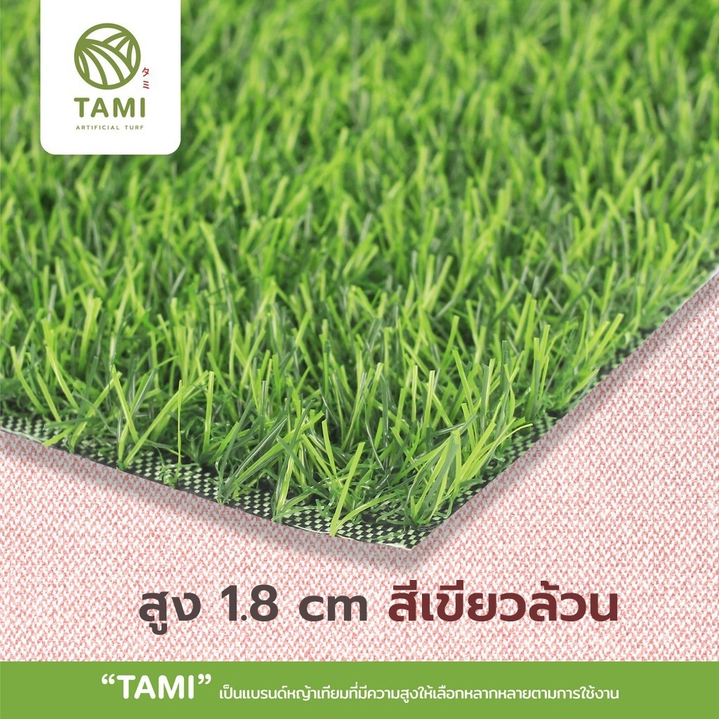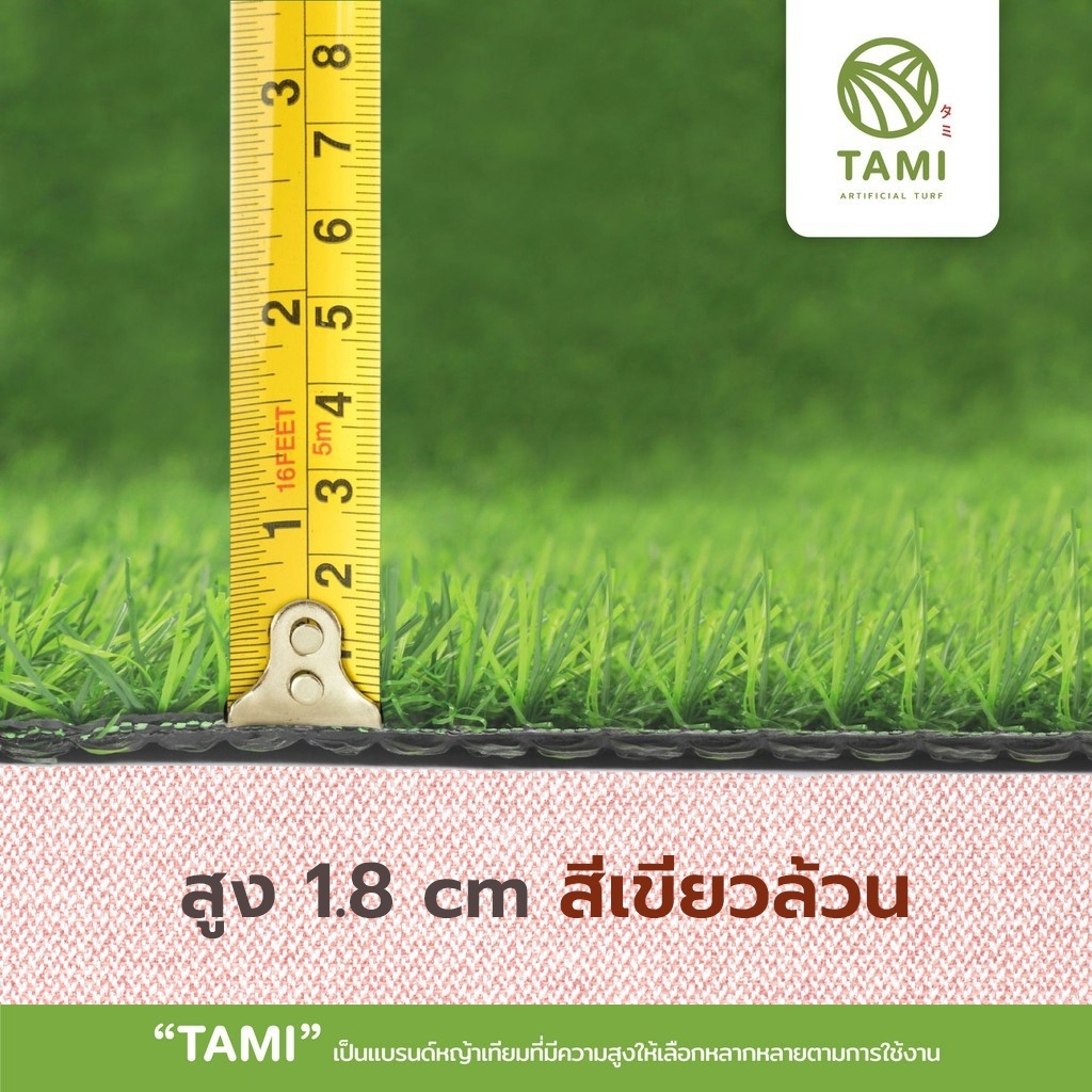 หญ้าเทียม ทามิสูง1.8ซม.เขียวล้วน กว้าง1,2ม. ยาวเริ่มต้น1ม.(ตรม.ละ170บาท) หญ้าปลอม สั่งตัดได้ตามต้องการ ถูกๆ ปูพื้น Tami