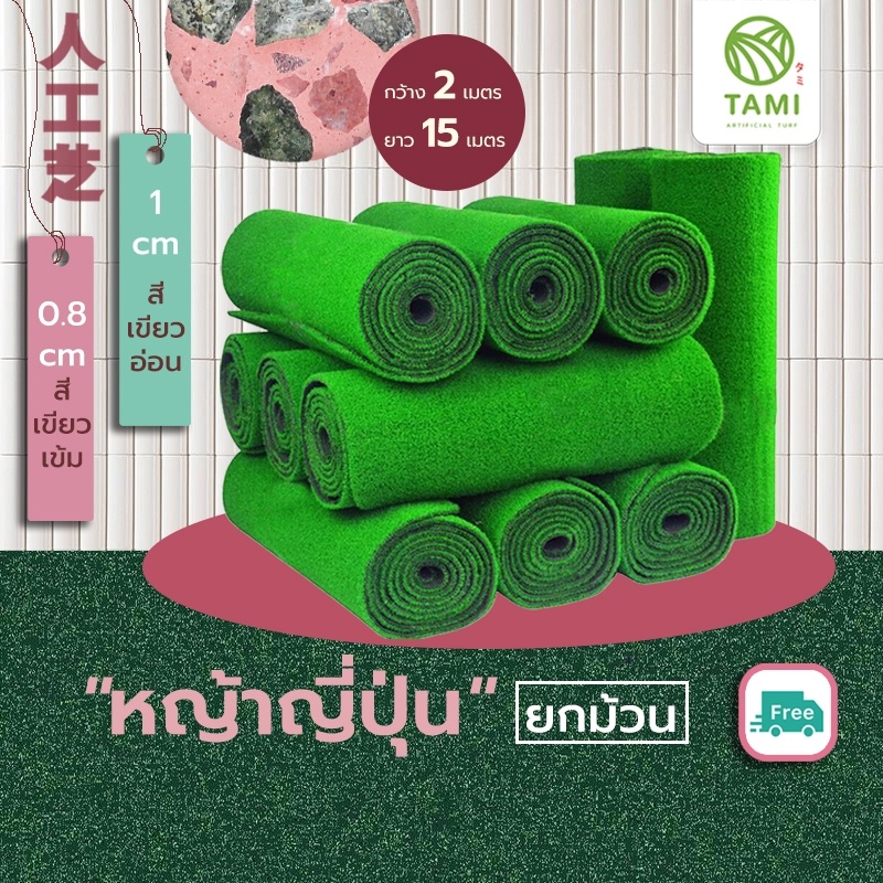 หญ้าเทียม ทามิ ใบหญ้าสูง 0.8, 1ซม. ขายยกม้วนขนาด หน้ากว้าง2ม.ยาว15ม.(30 ตรม.) หญ้าปลอม ถูกๆ ปูพื้น Tami Artificial Grass