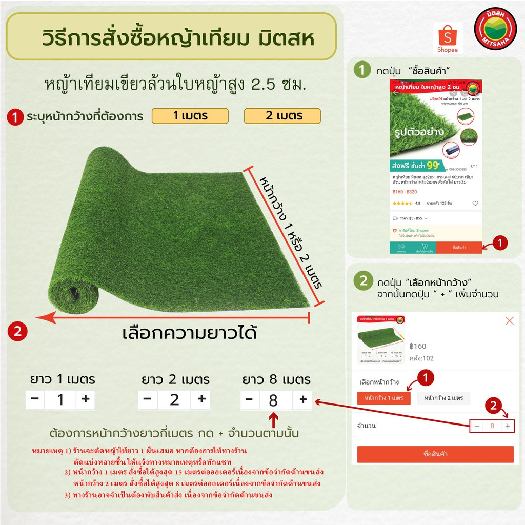หญ้าเทียม สูง2.5ซม.ตรม.ละ250บาท เขียวล้วน กว้าง1,2เมตร สั่งตัดได้ ยาวเริ่มต้น1เมตร ArtificialGrass