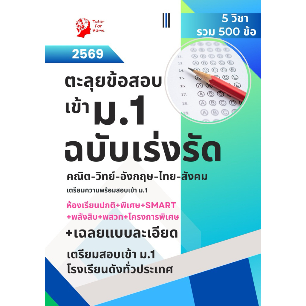 หนังสือตะลุยโจทย์สอบเข้าม.1 5 วิชา วิทย์ คณิต ไทย สังคม อังกฤษ พร้อมเฉลย 500 ข้อ