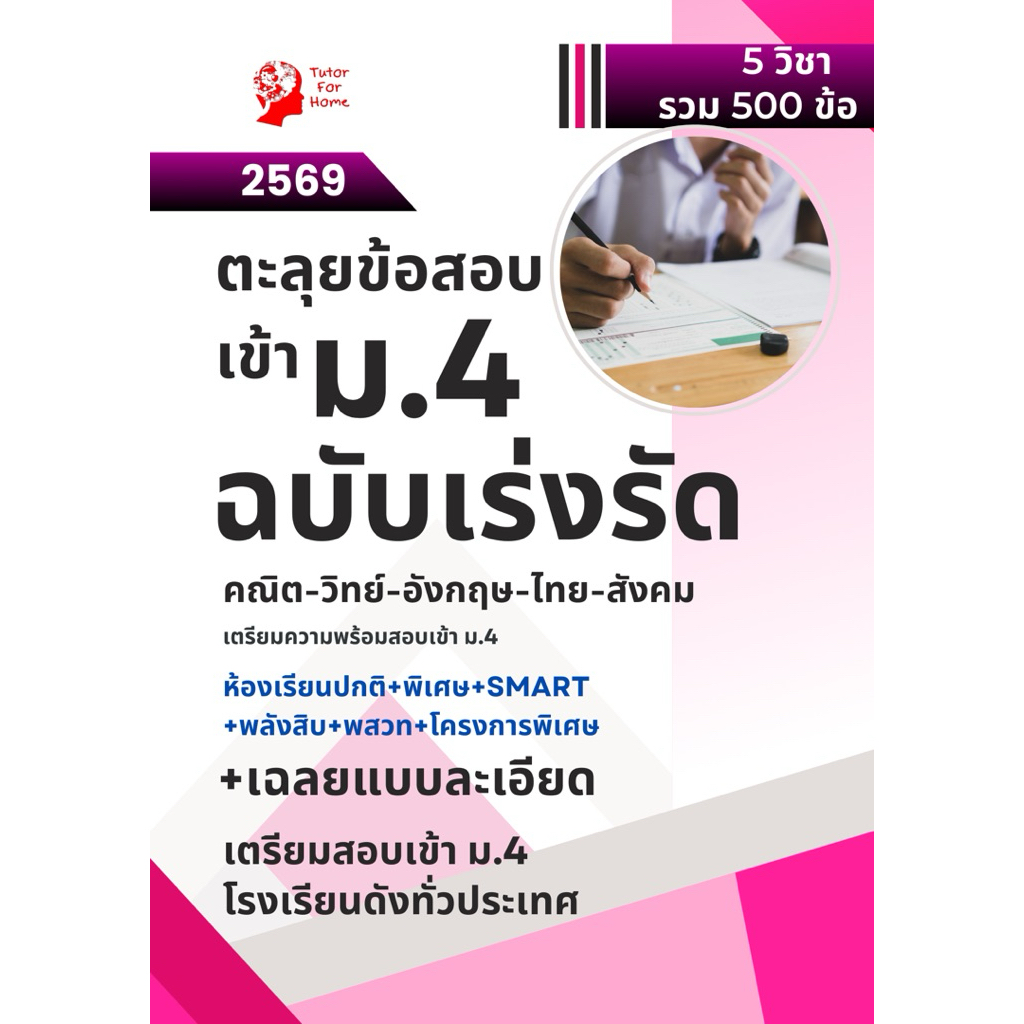 หนังสือตะลุยโจทย์เตรียมสอบเข้าม.4 ฉบับเร่งรัด 500 ข้อ วิทย์ คณิต อังกฤษ ไทย สังคม พร้อมเฉลย อัพเดต 2569