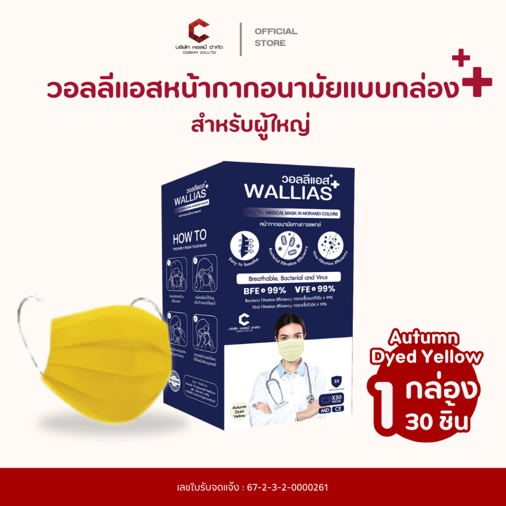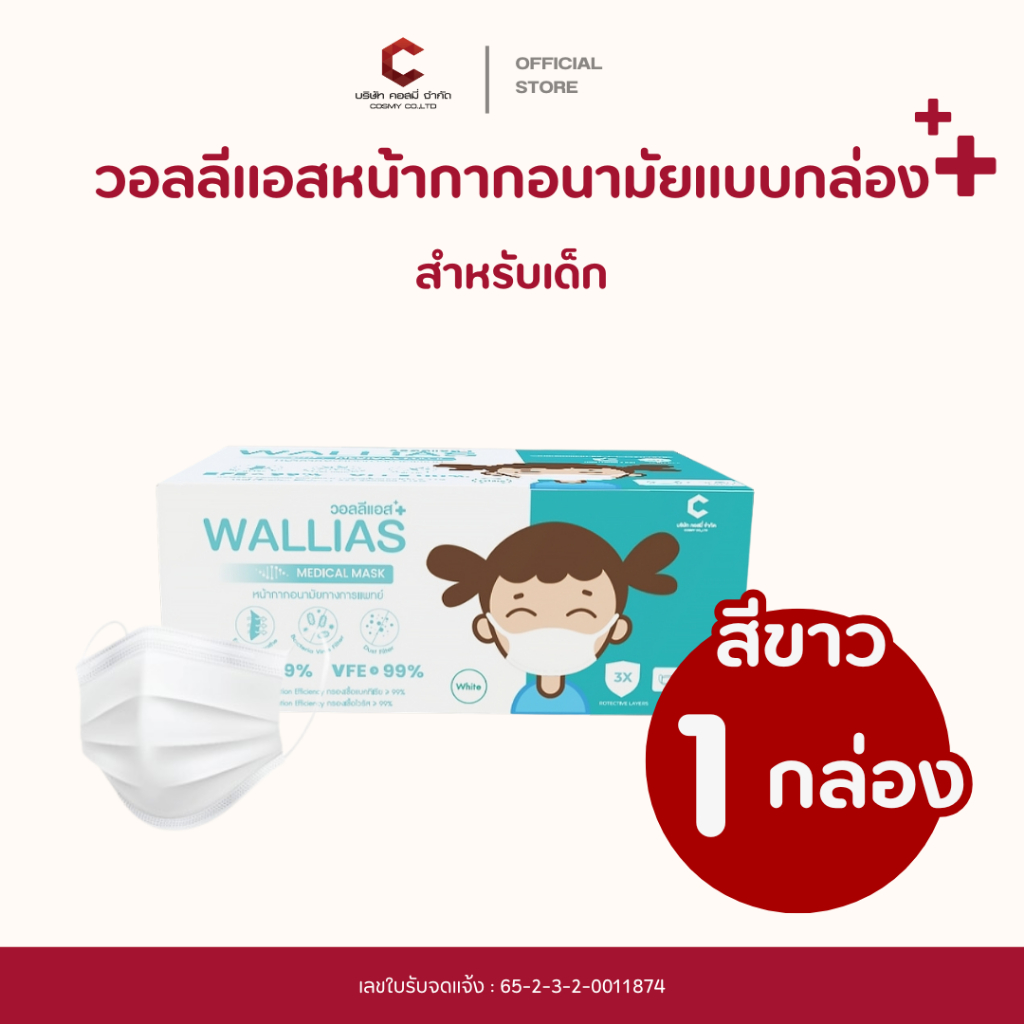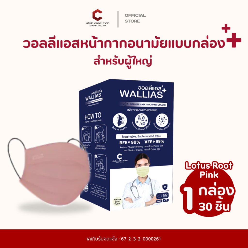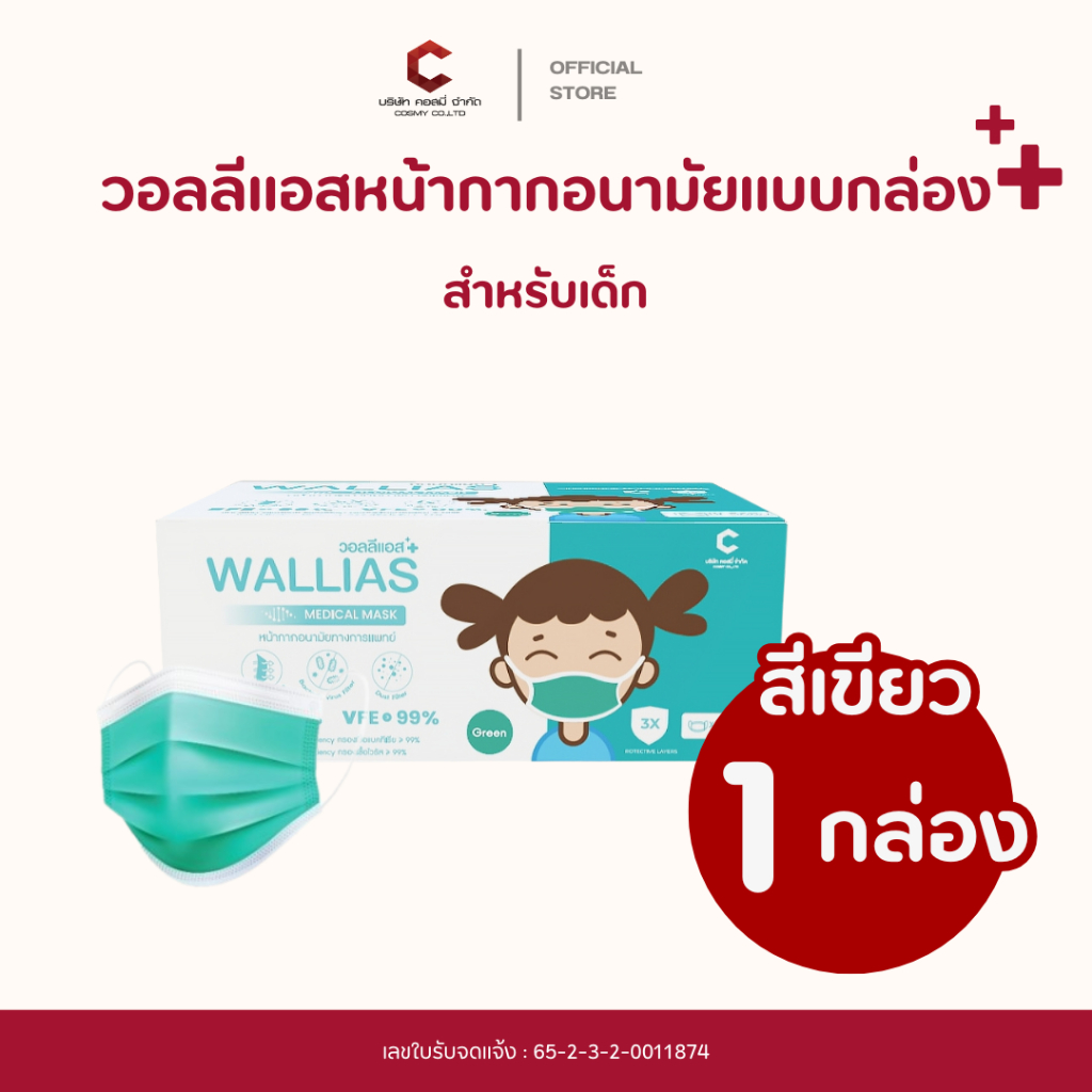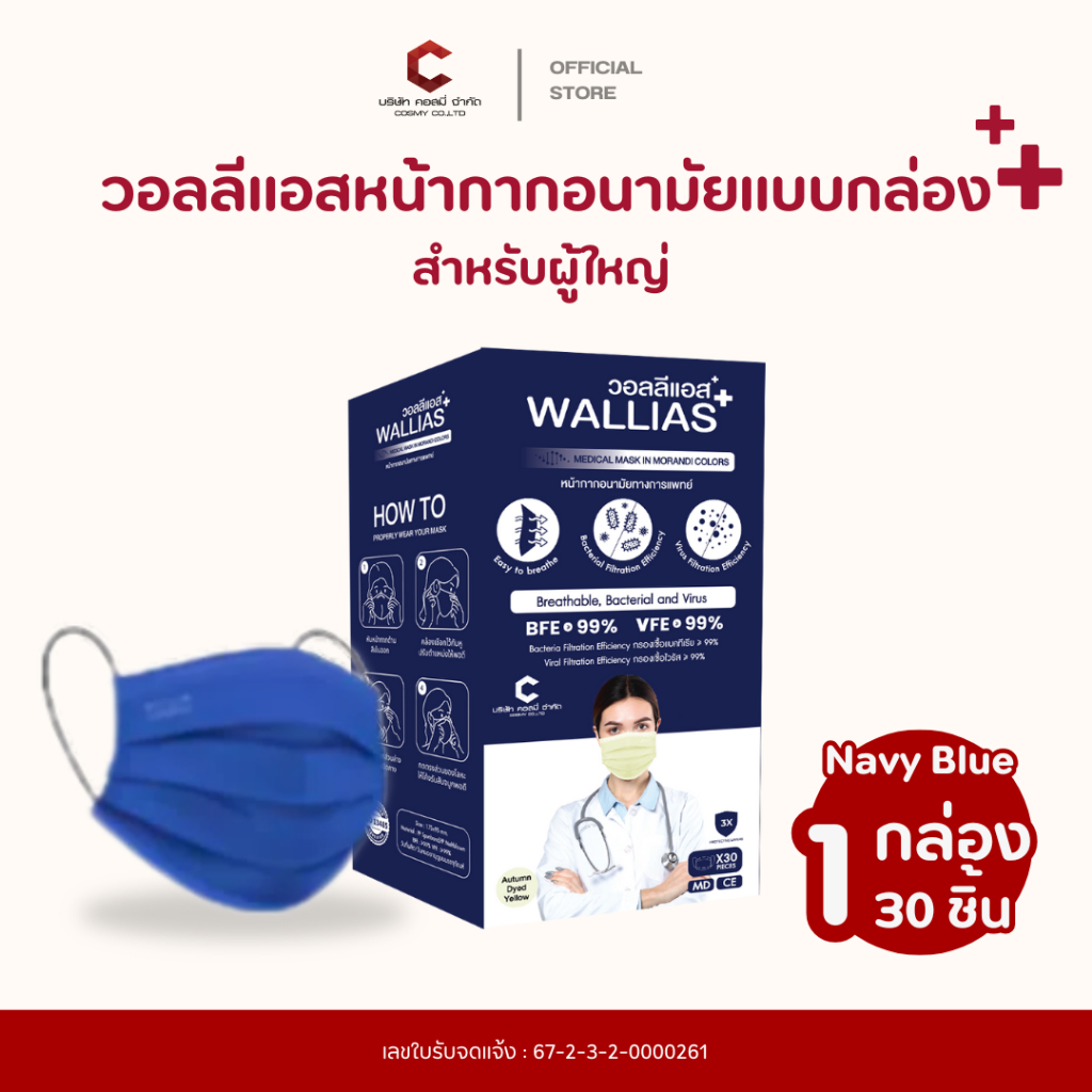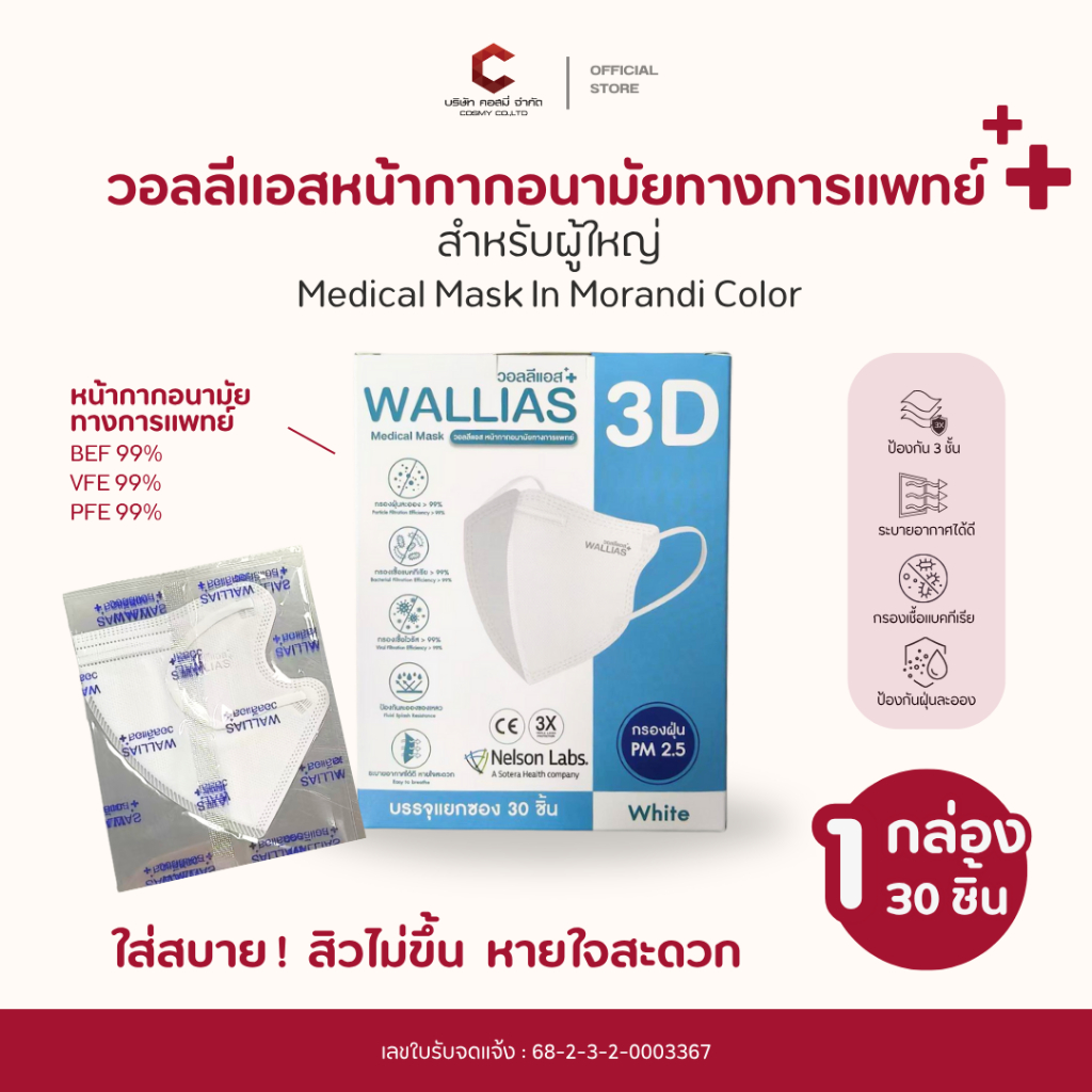 Wallias หน้ากากอนามัย เกรดการแพทย์ หนา 3 ชั้น แมส ป้องกัน ฝุ่น PM2.5 ไวรัส แบคทีเรีย 99% Medical Mask