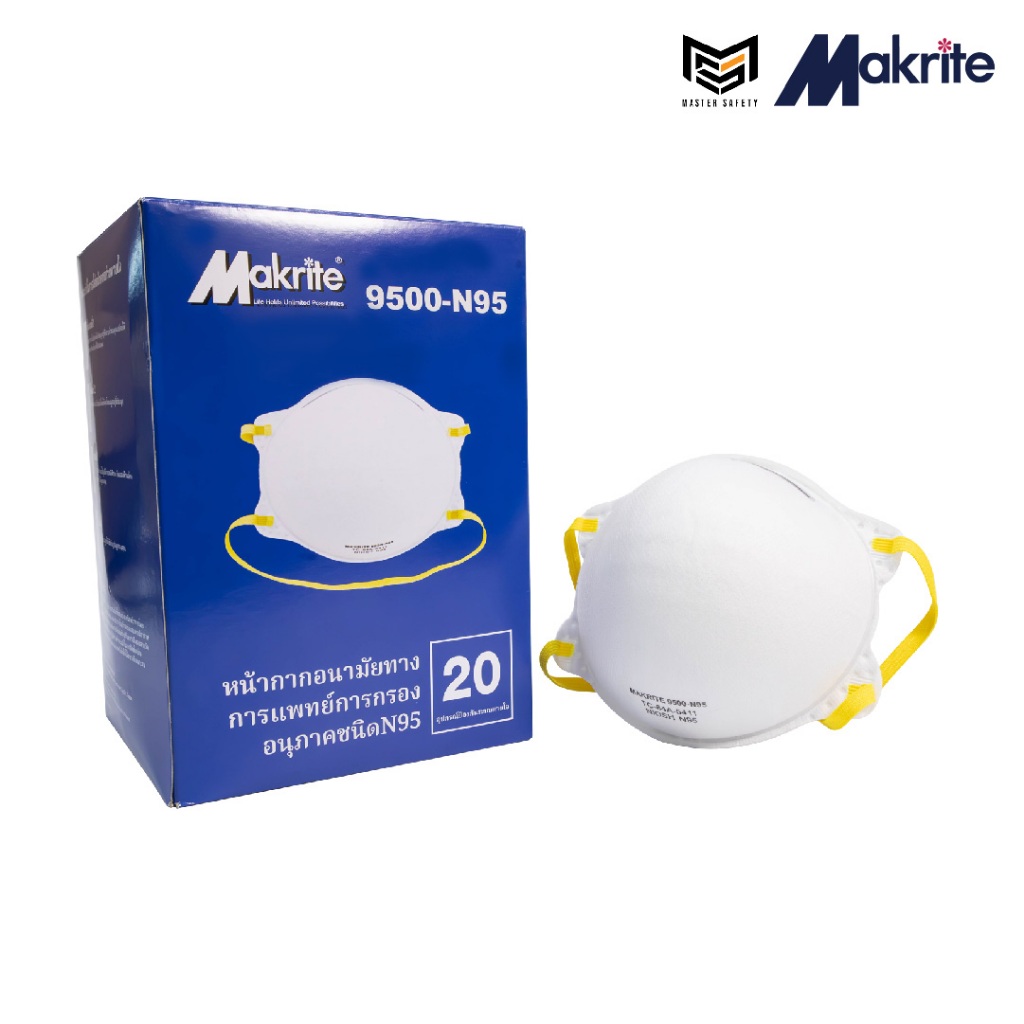 หน้ากากอนามัย Makrite รุ่น 9500-N95 ป้องกันกันฝุ่นและมลภาวะทางอากาศ 1 กล่อง 20 ชิ้น