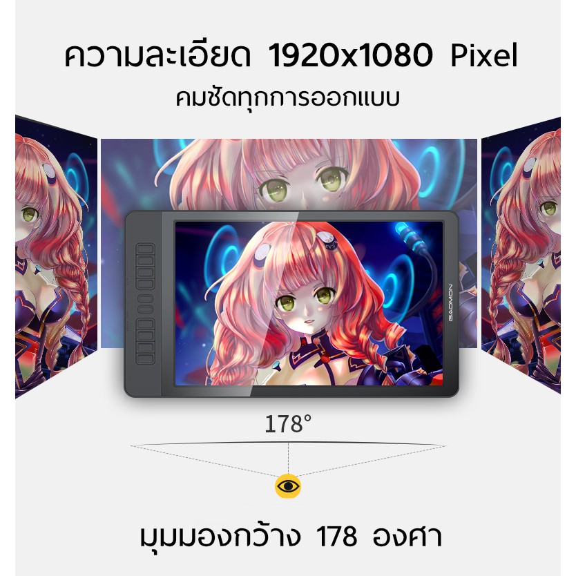 หน้าจอวาดภาพ 15.6 นิ้ว GAOMON GM156HD ปากกาแรงกด 8192 ระดับ ความละเอียด 1920 x 1080 pixel เม้าส์ปากกา เทียบชั้น Wacom