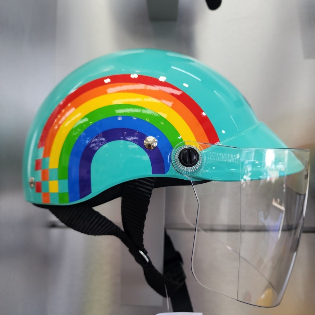 หมวกกันน็อคครึ่งใบ เด็ก YAMAHA สีสายรุ้ง เขียว Size 54cm