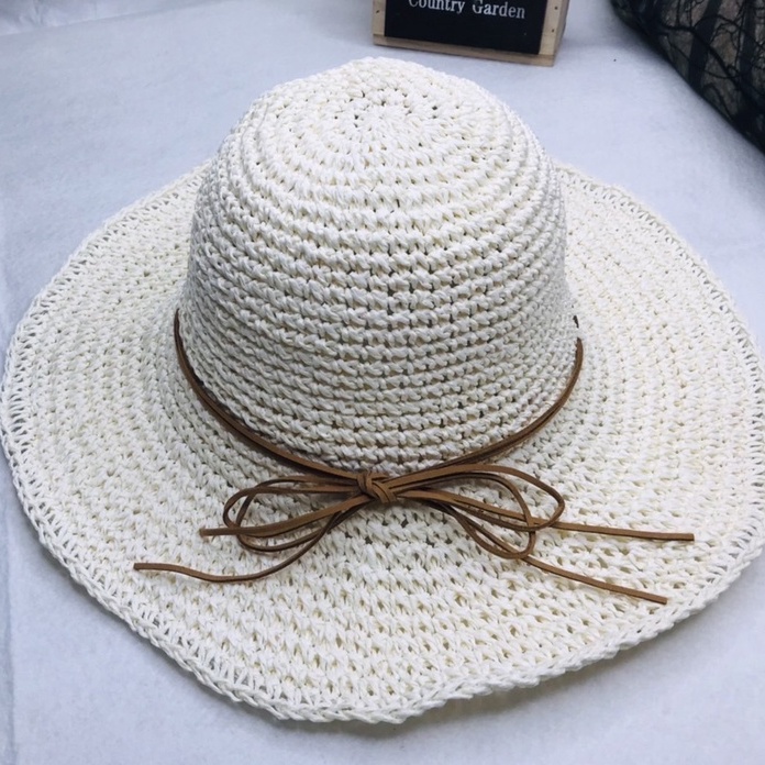 หมวกสานปีกกว้างผู้หญิง [รุ่นS010] กันแดดเที่ยวทะเล พับได้พกพาสะดวก [สินค้ามีพร้อมส่งจากไทย!]