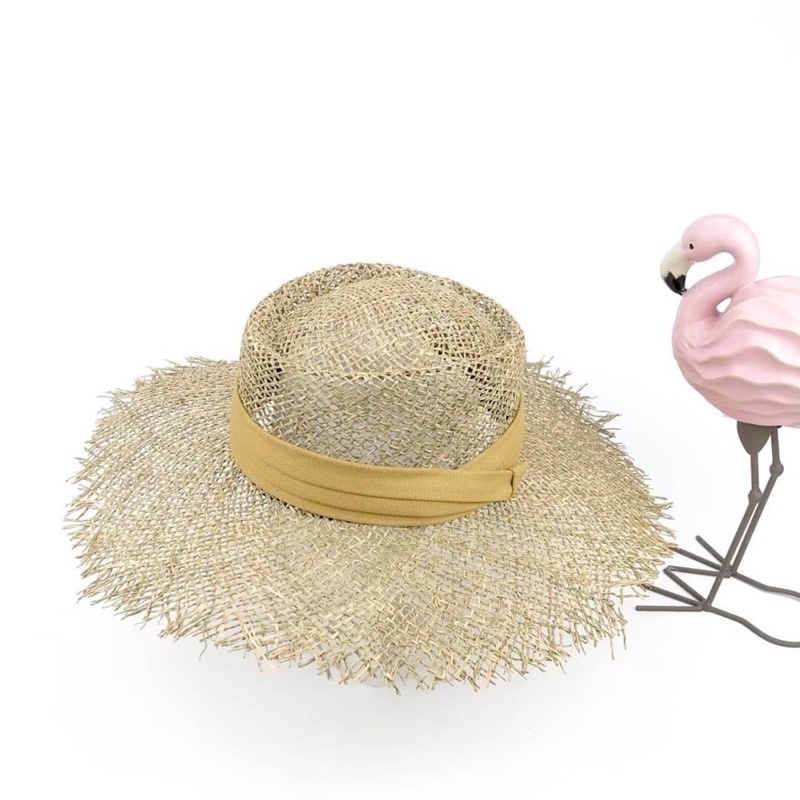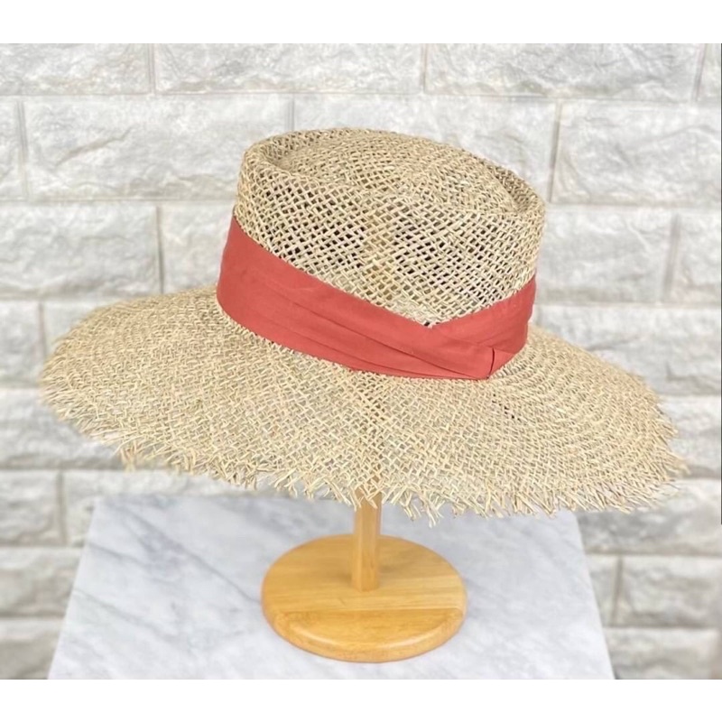 หมวกสานรังนกDomontขอบรุ่นคาดผ้าhat