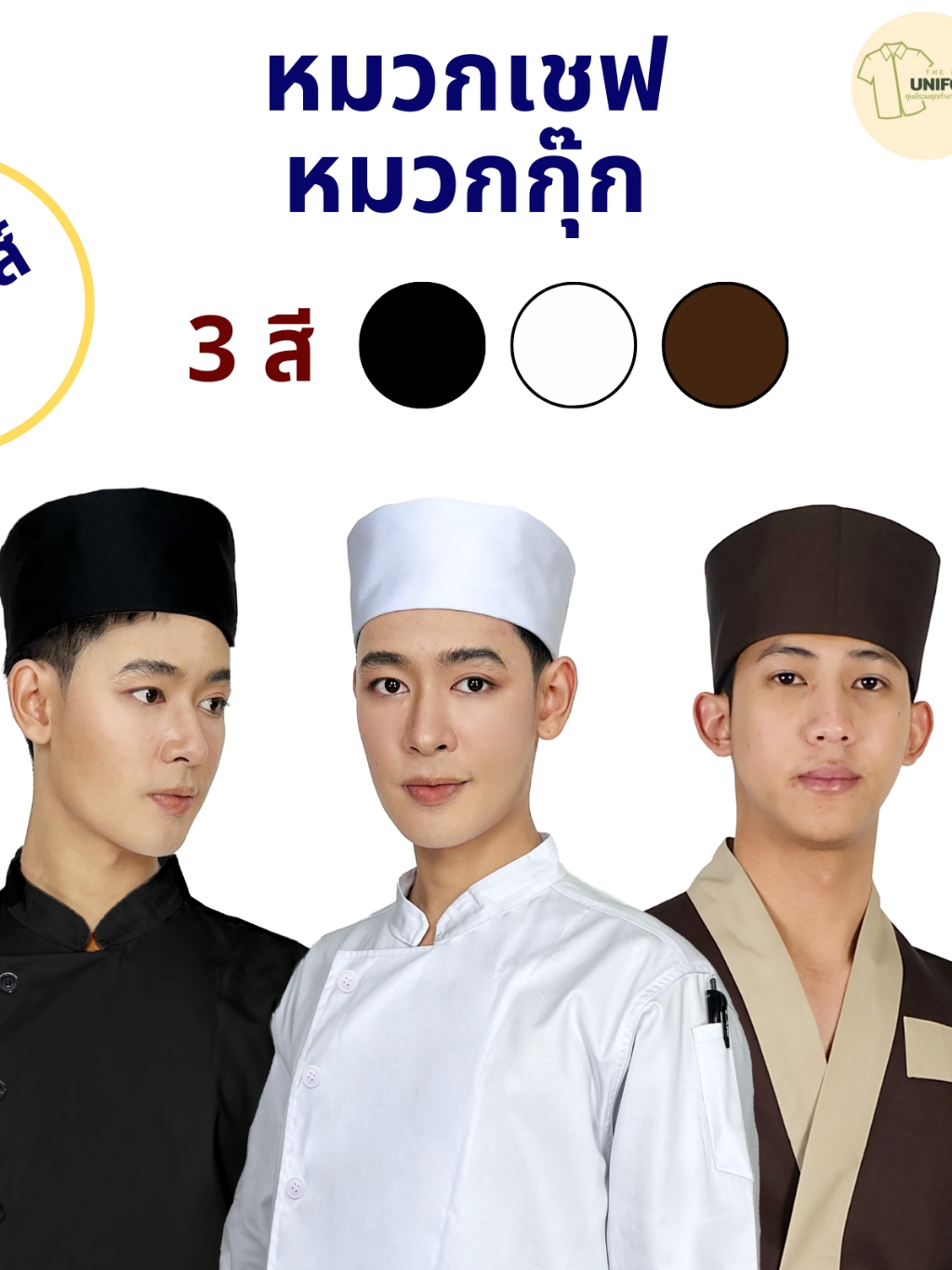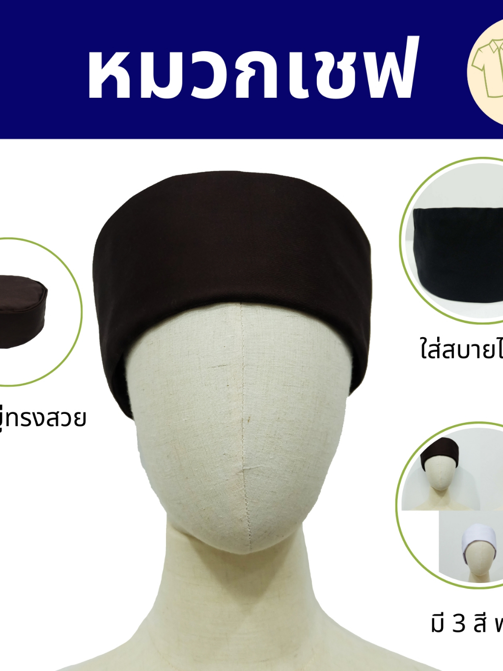 🚛🇹🇭หมวกเชฟ หมวกพ่อครัวทำอาหาร หมวกกุ๊กร้านอาหาร เนื้อผ้าหนาอยู่ทรง มี 3 สี