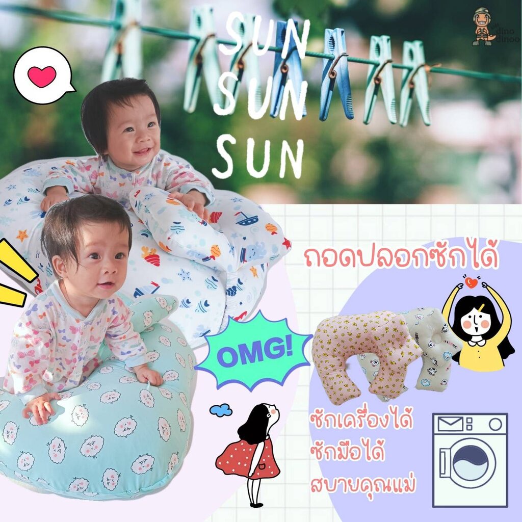 หมอนรองให้นม 👉รุ่น ใหญ่พิเศษ พร้อม หมอนรองคอ ผ้า DinoSmooth ถอดซักได้ กระชับ ลูกไม่ตก 62x60 cm. dinodinoo