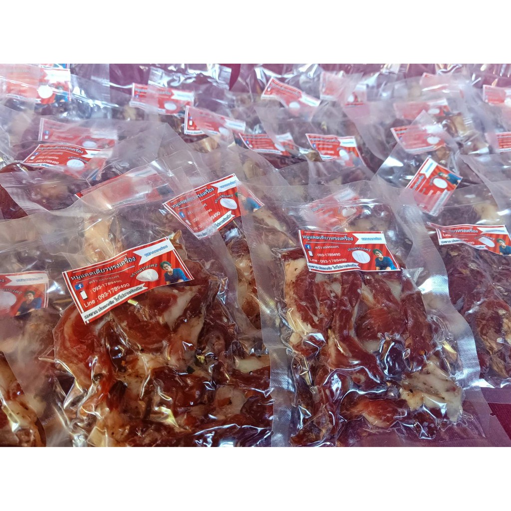 หมูแดดเดียว สูตรเด็ด รสทรงเครื่อง หอม อร่อย กลมกล่อม ไม่ใส่สารกันเสีย อาหารแห้ง ปริมาณ100 G ครัวแม่ทองศรี