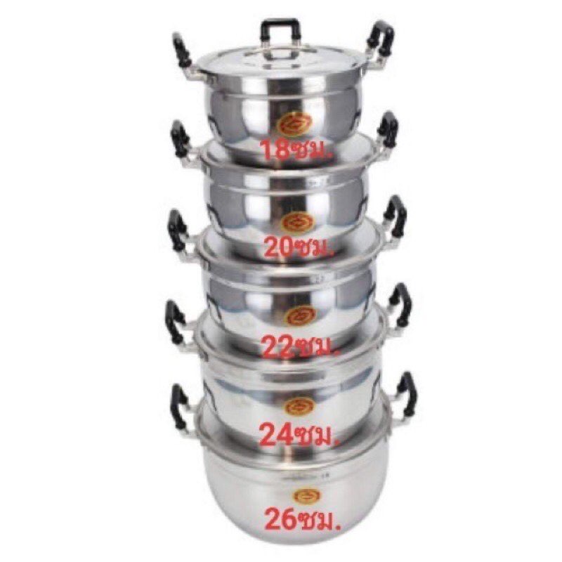 หม้อชุด หม้อชุดอลูมิเนียม หม้อแกง หม้อ2หู (ตราจระเข้) (5ใบ)ขนาด 18/20/22/24/26cm