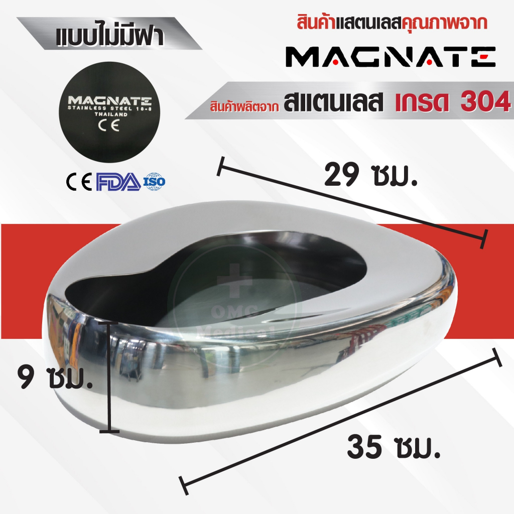 หม้อนอนถ่าย หม้อนอนสแตนเลส ADULT BEDPAN ยี่ห้อ Magnate Sphinx Sen โถอุจจาระ ปัสสาวะ แข็งแรง ทนทาน