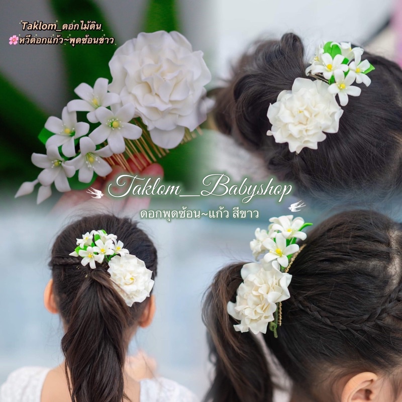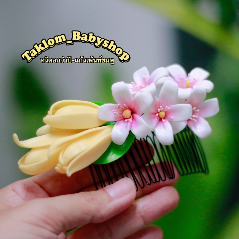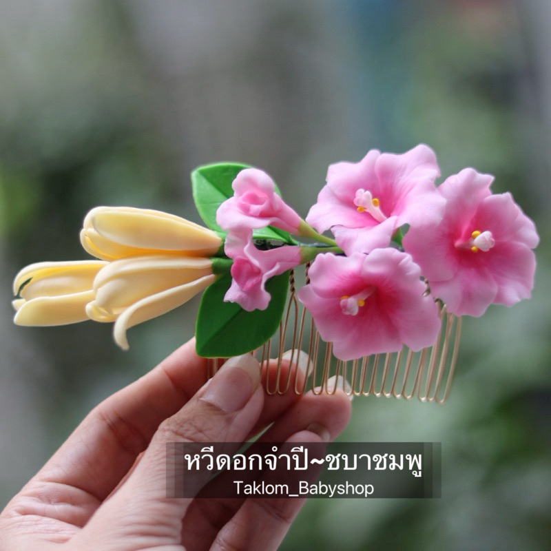 หวีสับดอกไม้ดินปั้น ดอกไม้ติดผม ดอกไม้ติดผมเจ้าสาว ดอกปั้นด้วยมือ