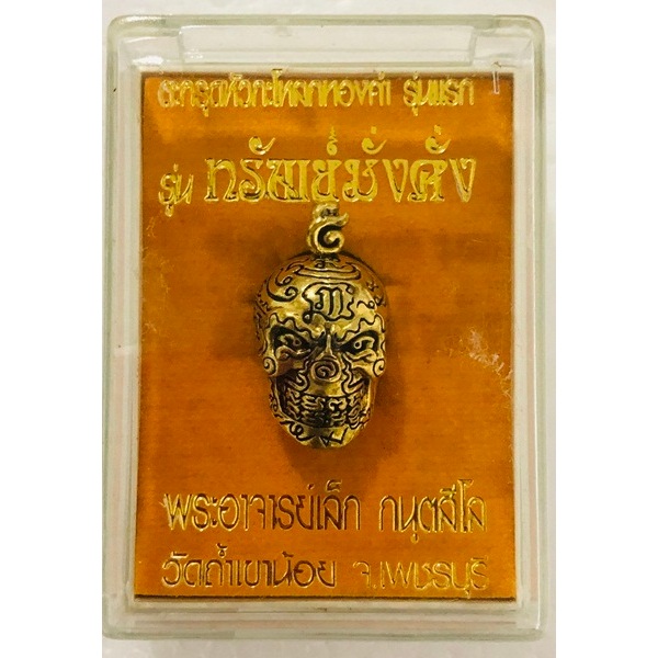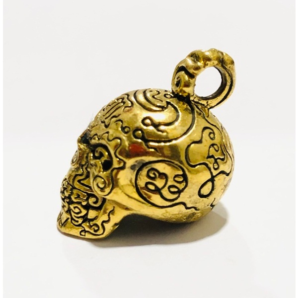 หัวกะโหลกทองคำ รุ่น “ทรัพย์มั่งคั่ง” รุ่นแรก พระอาจารย์เล็ก เนื้อทองเหลือง