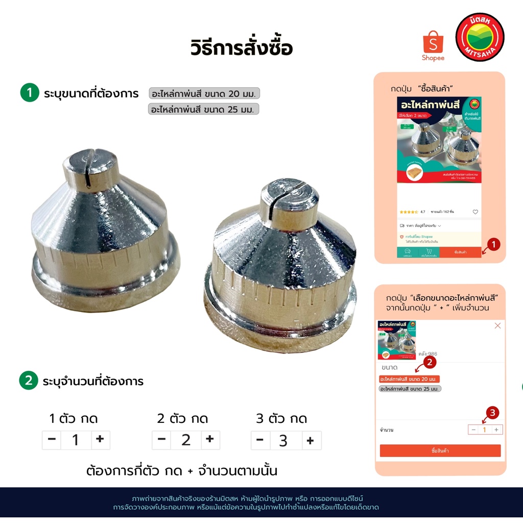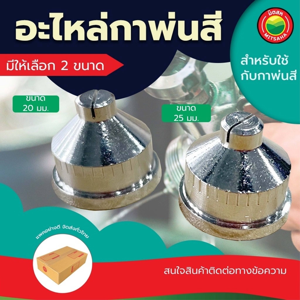 หัวกาพ่นสี ขนาด 20mm, 25mm แบบรูผ่า สีเงิน SPRAY GUN NOZZLE อะไหล่ หัว กา พ่นสี แบบตรง รูพ่น รูผ่า ที่พ่นสี กาล่าง มิตสห