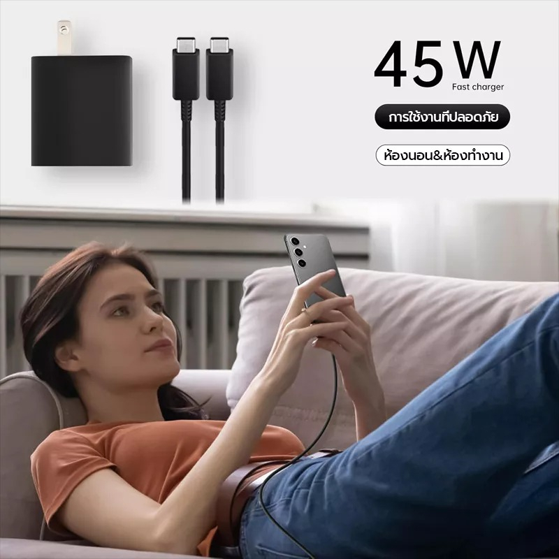 【ของแท้ 100%】ชาร์จเร็วสุด ชุดชาร์จ 45W หัวชาร์จเร็วซัมซุงของ type C สายชาร์จ type c