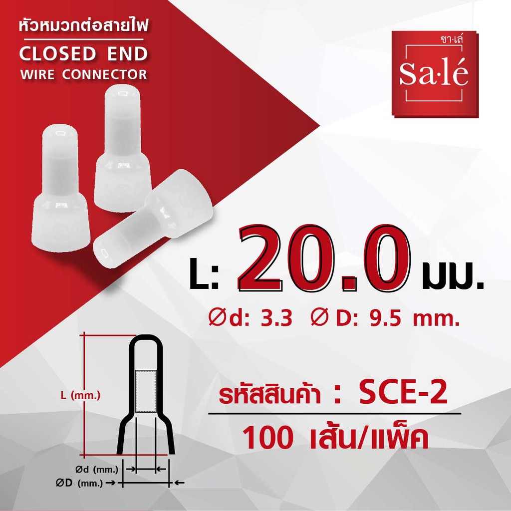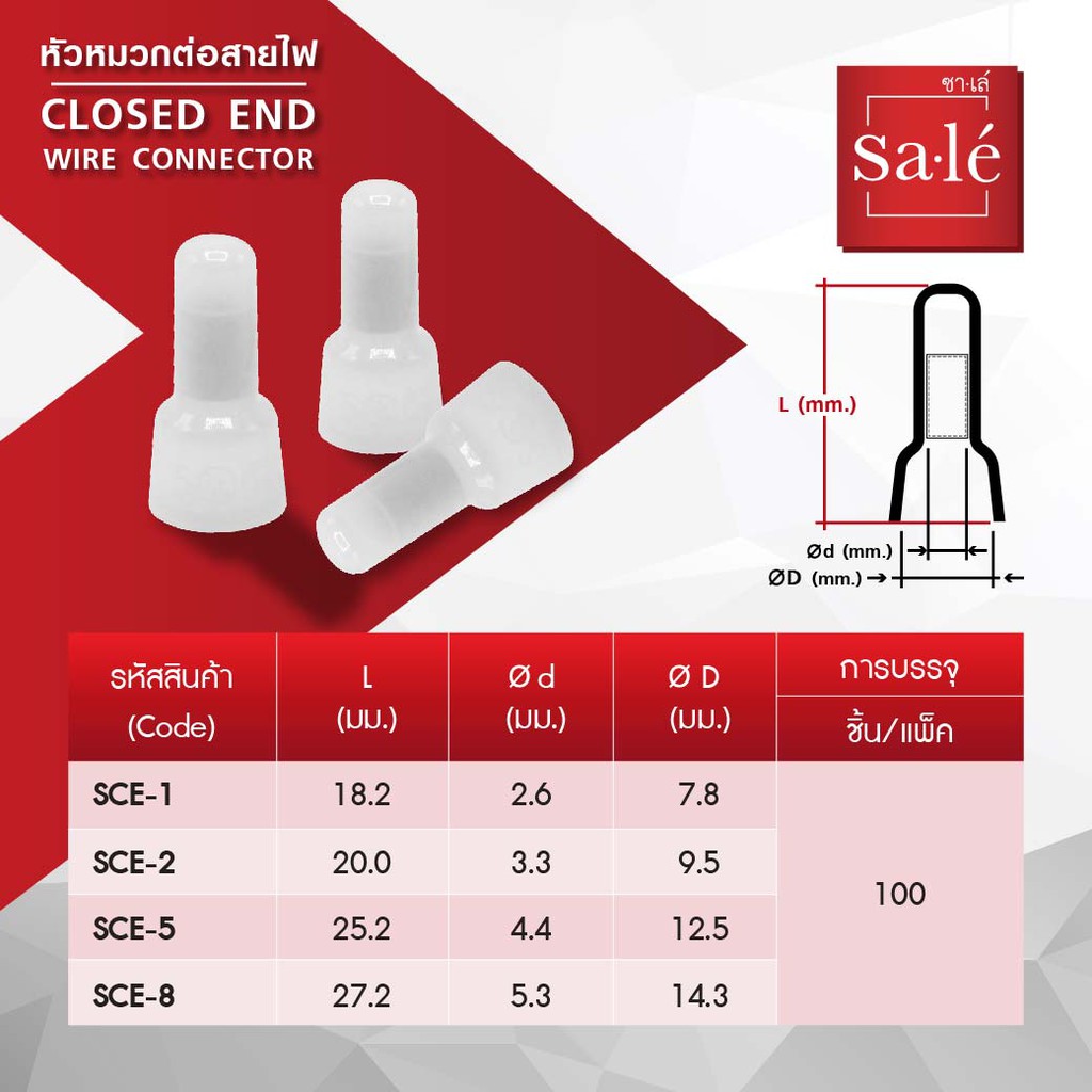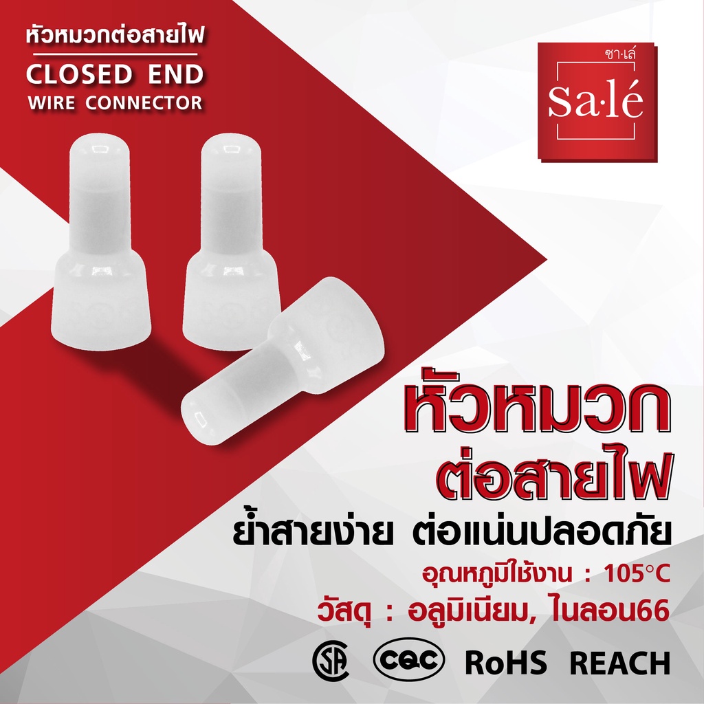 หัวหมวกต่อสายไฟ หางปลาหัวหมวก ตัวจับไฟ ซาเล่ ขนาด 18.2mm, 20mm, 25.2mm 1ถุง/100ชิ้น