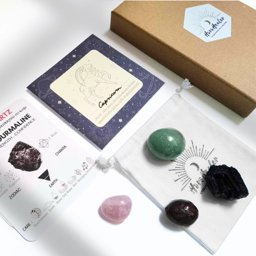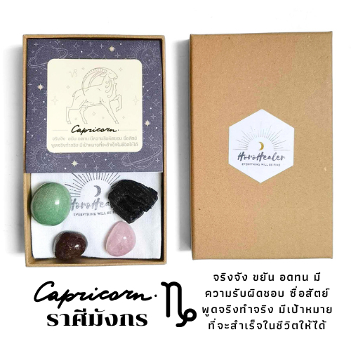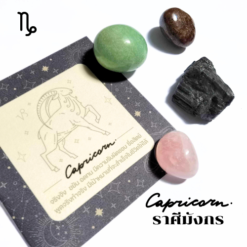 หินเสริมดวง " ราศีมังกร " Capricorn by HoroHealer ขนาดพกพา พร้อมถุงผ้าและคำแนะนำในการดูแลและการชาร์จหิน