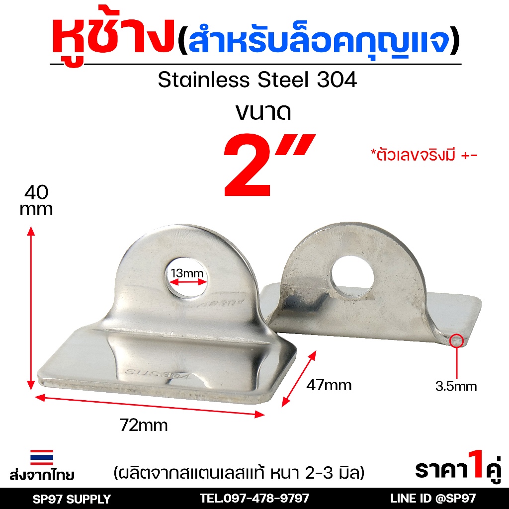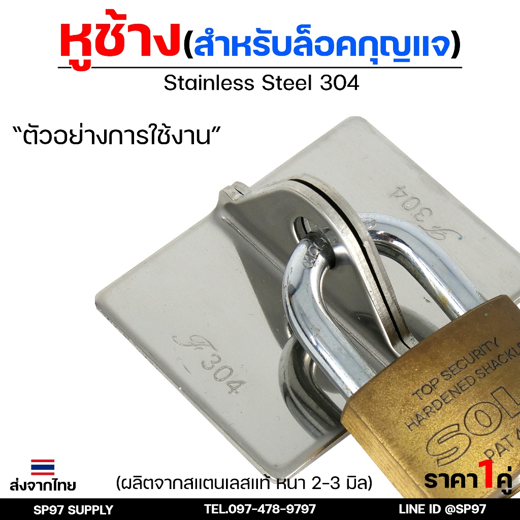 หูช้าง ล็อคกุญแจ ล้อคประตู (ขนาดใหญ่) 2 นิ้ว สแตนเลสเกรด 304 (จำนวน 1คู่) สายยู ล้อคประตู