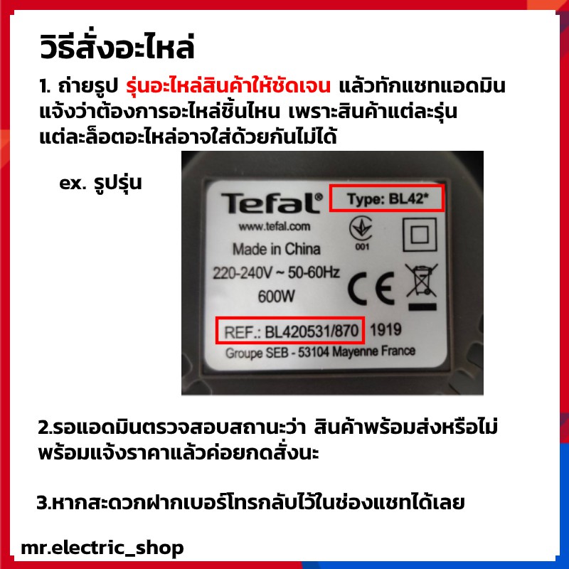 อะไหล่เครื่องปั่น tefal โถปั่น ใบมีด รุ่น bl811,BL82,BL88A [อ่านรายละเอียดก่อนสั่ง] แท่งคน ทีฟาล์ว 811/82/88