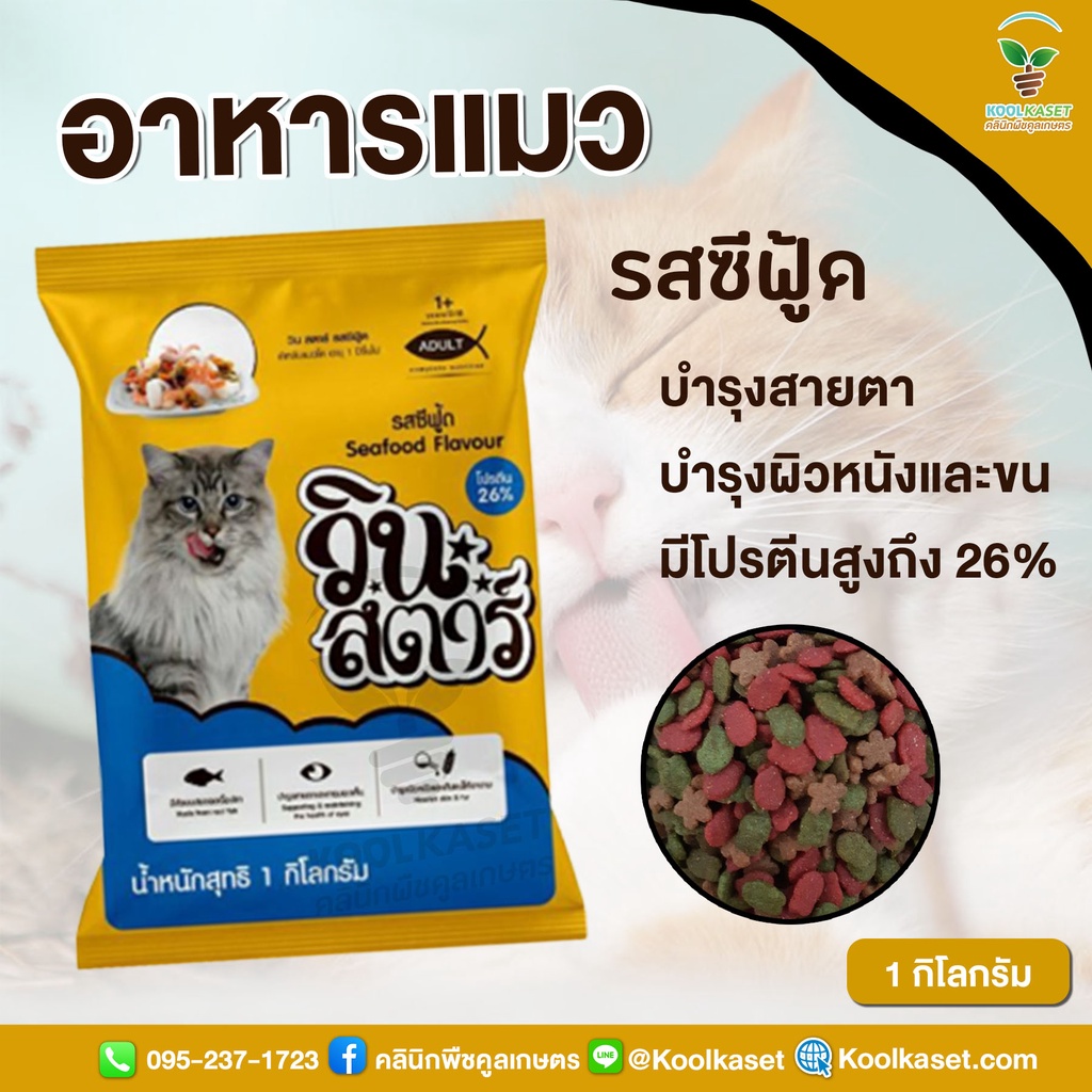 อาหารแมววินสตาร์ 10 กิโลกรัม รสทูน่า รสซีฟู้ด ชนิดเม็ด สูตรพรีเมี่ยม หอม อร่อย แมวชอบรับประทาน คูลเกษตร KF5