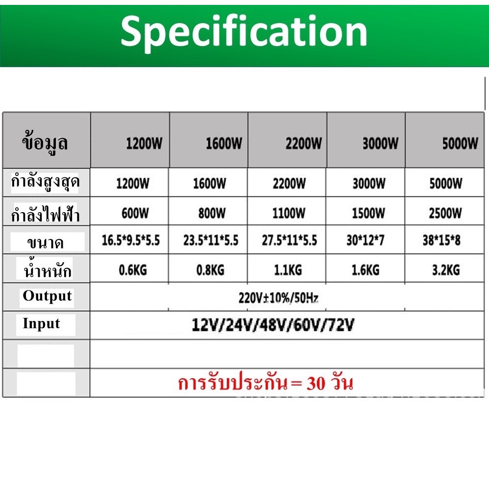 อินเวอร์เตอร์1600W รุ่น12Vอินเวอร์เตอร์เพียวซายเวฟ Inverter pure sine wave อินเวอร์เตอร์ แปลงไฟ