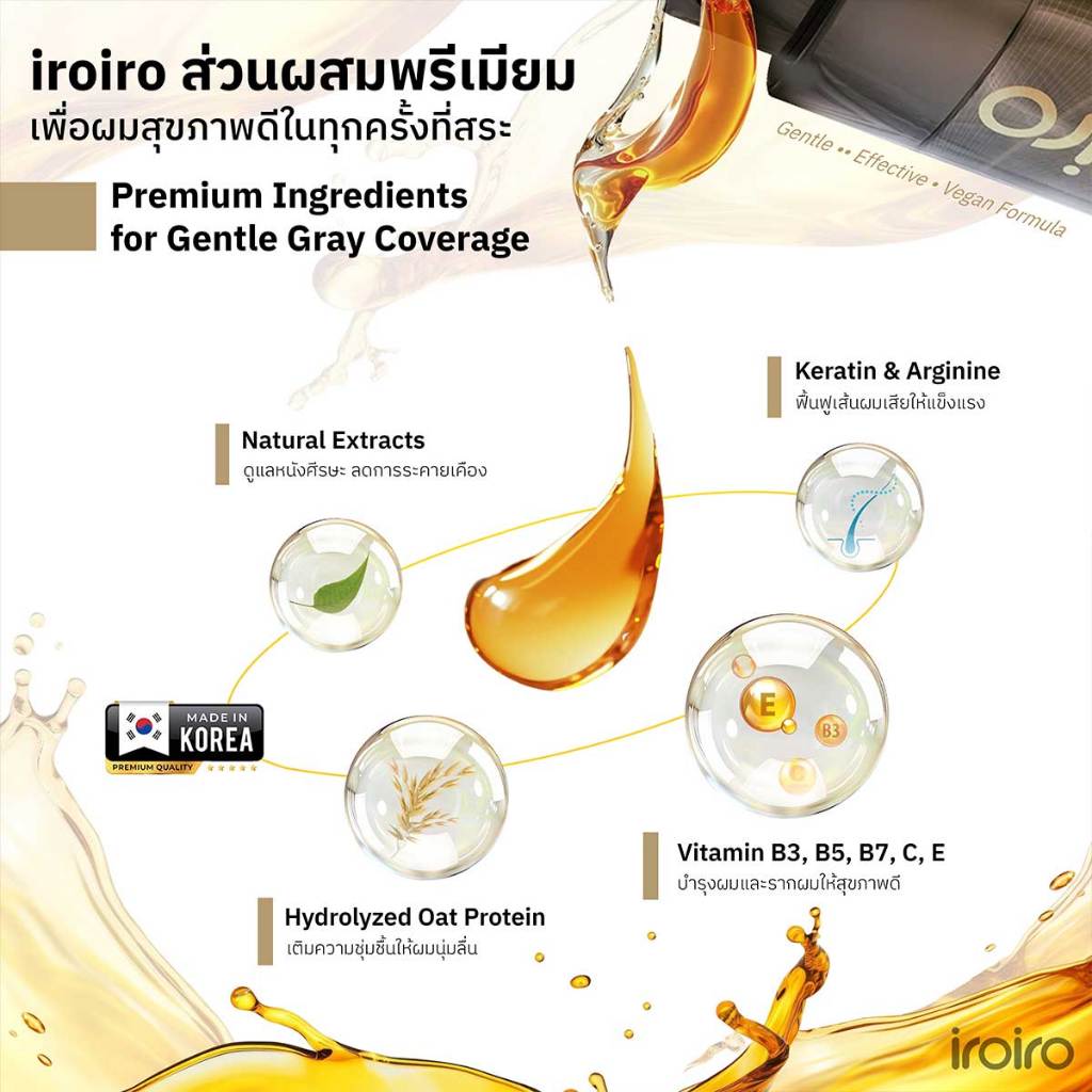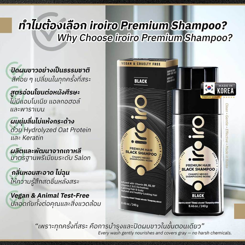 iroiro แชมพูปิดหงอก พรีเมียม สีดำและสีน้ำตาล ปิดผมขาวธรรมชาติ สูตรเกาหลี ไม่แห้งเสีย